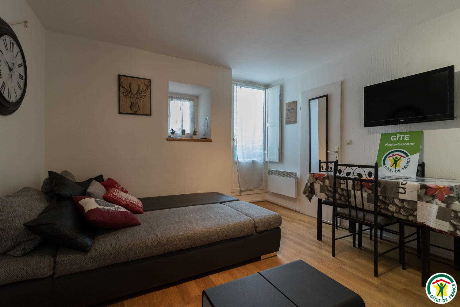 Apartment for 3 people, on the first floor of the “Le Grand Hôtel” residence, on the famous “allée d’Etigny” of the town, Queen of the Pyrenees, Bagnères-de-Luchon, 50 meters from the Luchon Forme et Bien-être thermal baths, and 150 meters from the cable car taking you to the Luchon-Superbagnères ski resort! Ideal for a spa or tourism stay! Numerous activities and visits in the heart of the Pyrenees and the South West: fishing in the Pique river 200 meters from the apartment, walks around the Badech lake (you can also play golf) 1.3km away; bike hire from Luchon Mountain Bike 800 meters away; horse riding 4.1km away from Luchon Pyrénées Équitation; Antignac base 6.1km away (canoeing, rafting…)….); Spain 8km away; Lac d’Oô hike 13km and Hospice de France hike 12.3km; Saint-Bertrand-de-Comminges, one of France’s favorite villages, 34.5km. Pets not allowed. 28m2 apartment: entrance, small living room with kitchenette (combined microwave oven, small fridge-freezer, 2 induction hobs, dishwasher, 4kg washing machine), dining area (1 table and 4 chairs) and lounge area (sofa bed for 2 people 145*190cm, coffee table and flat-screen TV). 1 bedroom (1 double bed 140*190cm), bathroom with bath, washbasin and WC. Electric heating. Public parking downstairs. 3-week spa package at 580? Information on Pyrenees 31 events at: https://www.pyrenees31.com/. You can come to the apartment without your car: from Toulouse, you can take the train to Montréjeau and then a bus that will leave you at the bottom of the apartment! A shuttle bus can take you to the thermal baths or the Peyragudes ski resort. Traduction automatique par DeepL via DATAtourisme