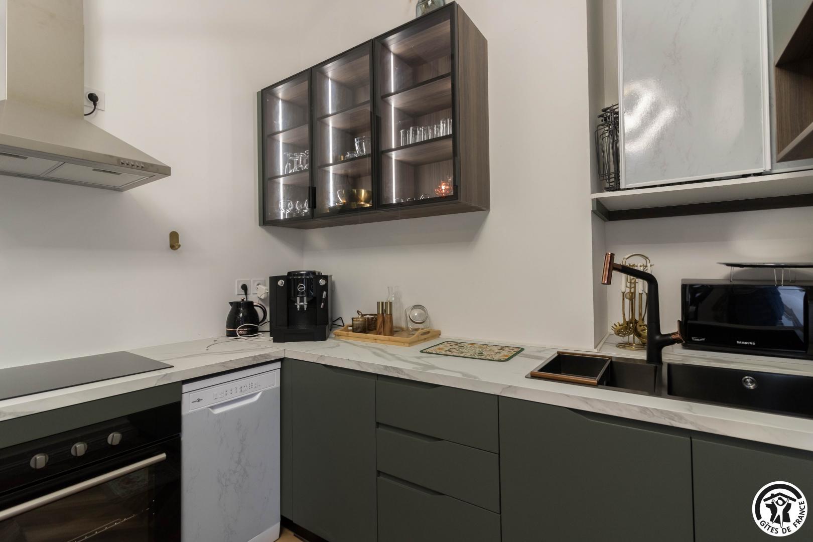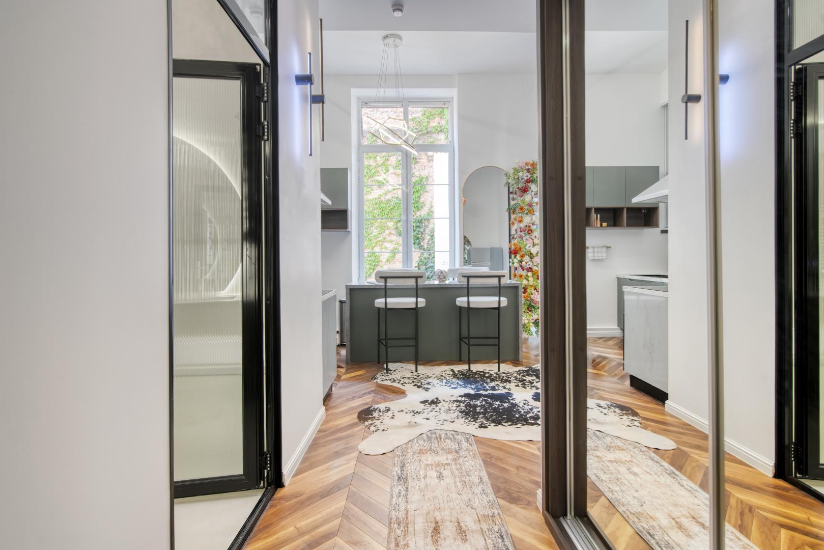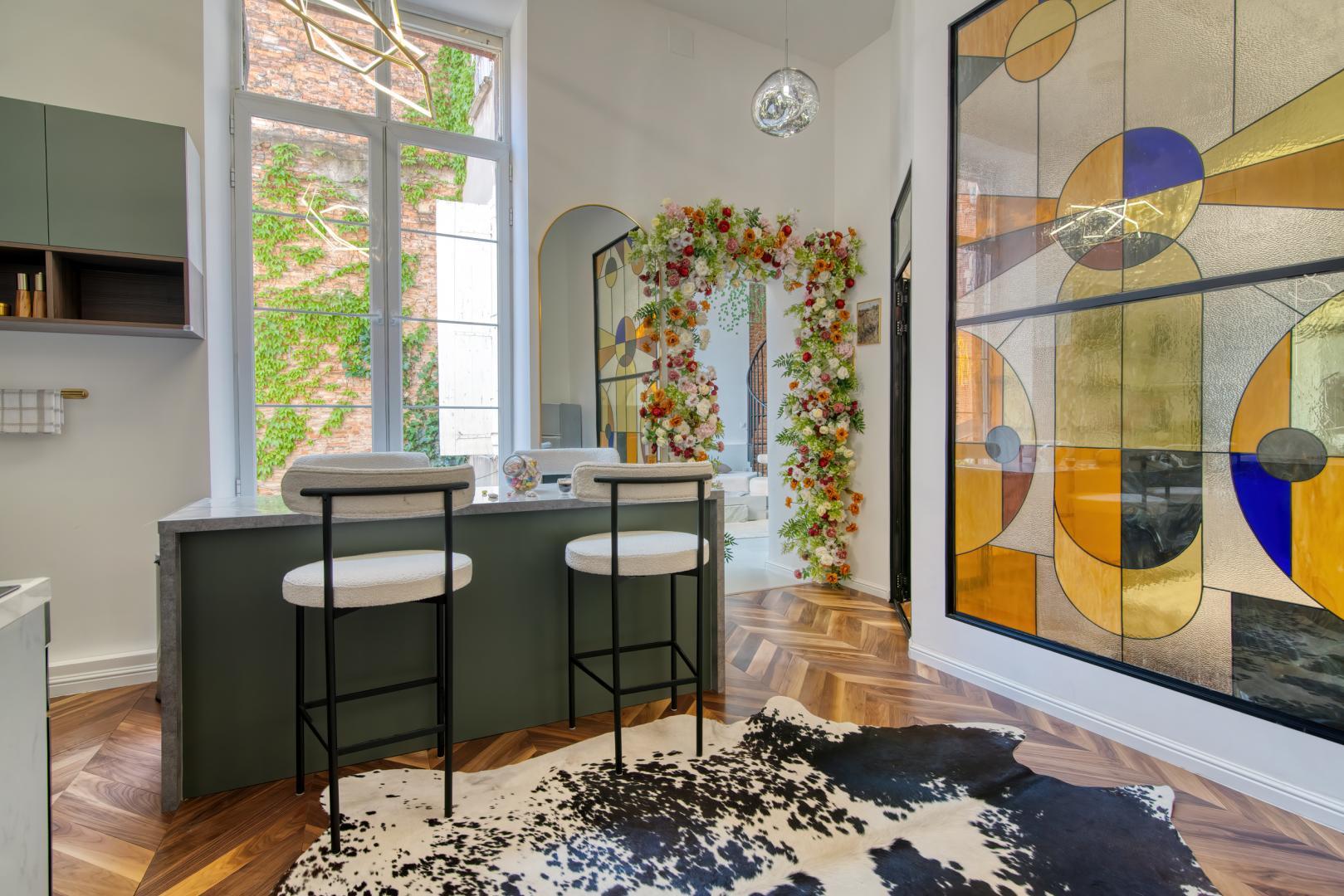 Un mariage parfait entre le vintage et le moderne, d’un style Antique invitant à des vacances en amoureux, mais aussi en famille ou entre amis…L’espace ne vous manquera pas dans ces 110m2, un luxe ! Le fait que l’appartement soit orienté côté cours, vous permettra de profiter d’un calme implacable pour télétravailler ou vous reposer.