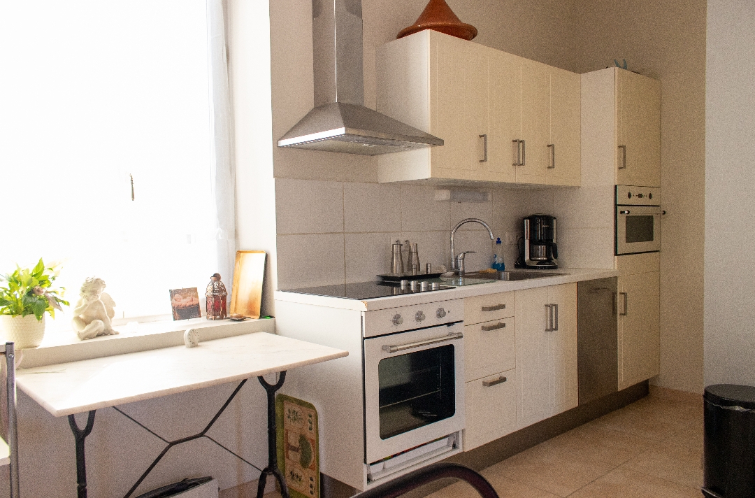 Pièce principale avec cuisine ouverte sur le salon, avec accès chambre et salle d’eau attenante. Le salon et la chambre ont un accès direct sur une terrasse de 80m2 avec vue sur l’Hérault, et les montagnes