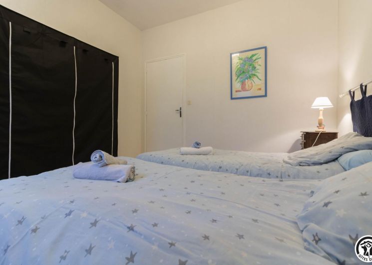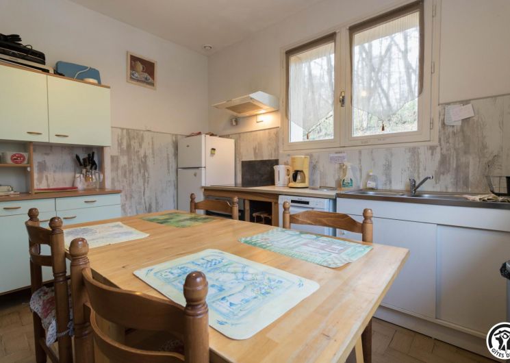 The gîte is on the first floor with a balcony around the living room. Hallway entrance, separate kitchen, living room with dining area and sitting area, 3 bedrooms (2 single beds 90cm), (1 double bed 140cm) (1 double bed 140cm), bathroom and separate WC.