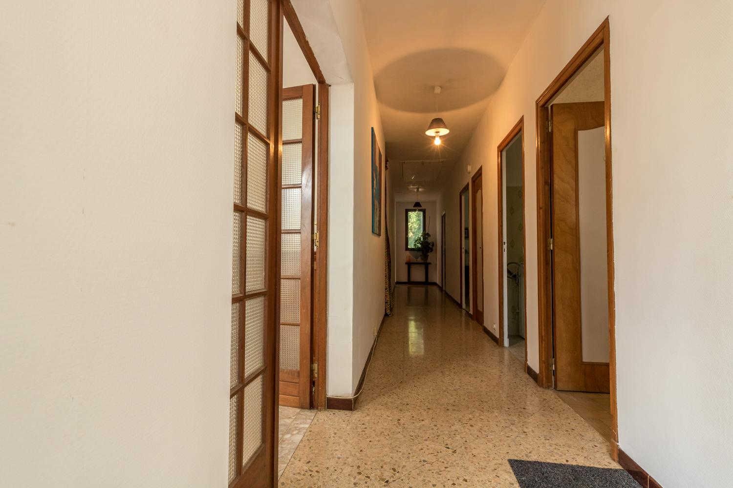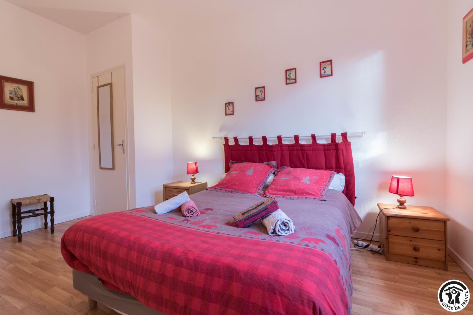 The gîte is on the first floor with a balcony around the living room. Hallway entrance, separate kitchen, living room with dining area and sitting area, 3 bedrooms (2 single beds 90cm), (1 double bed 140cm) (1 double bed 140cm), bathroom and separate WC.