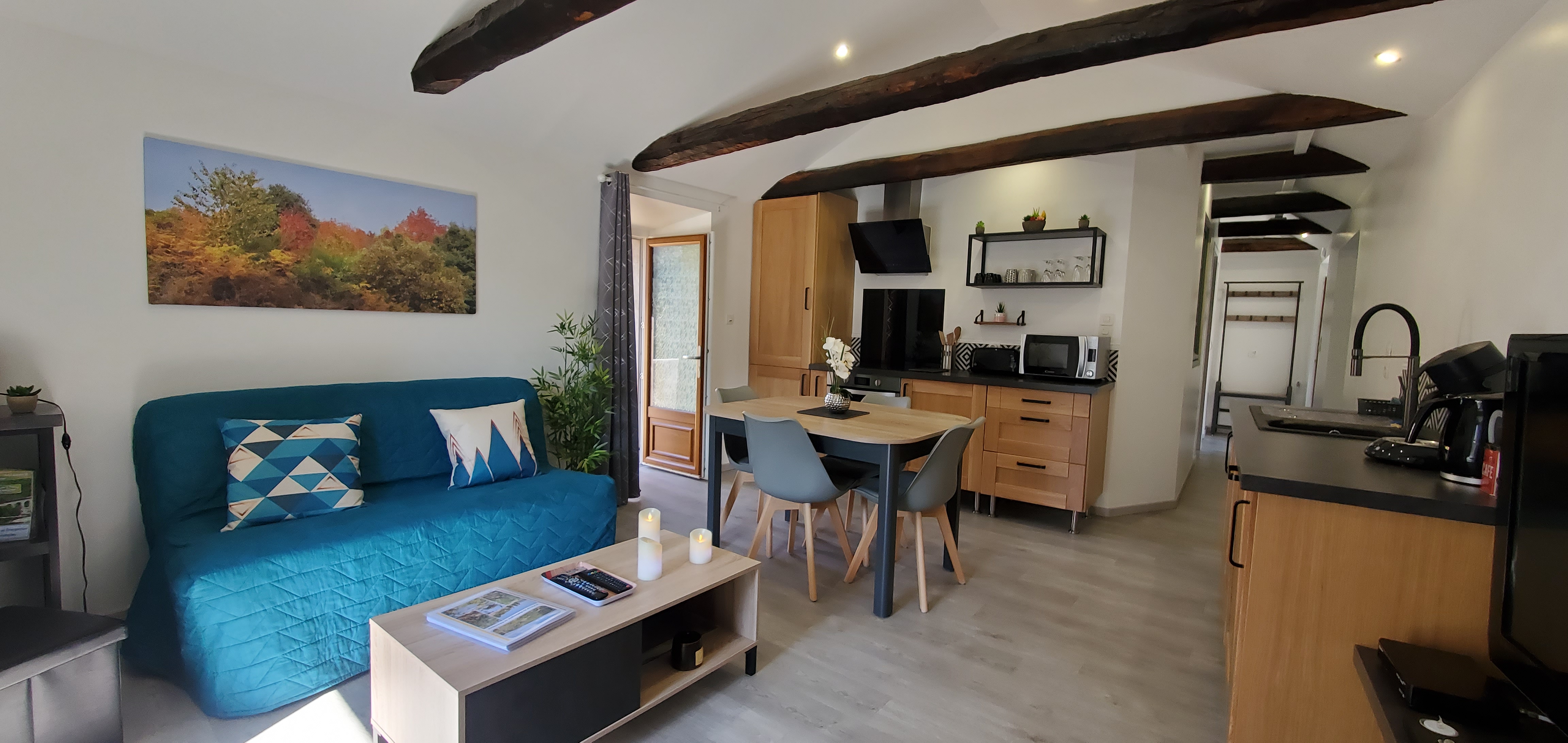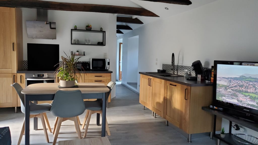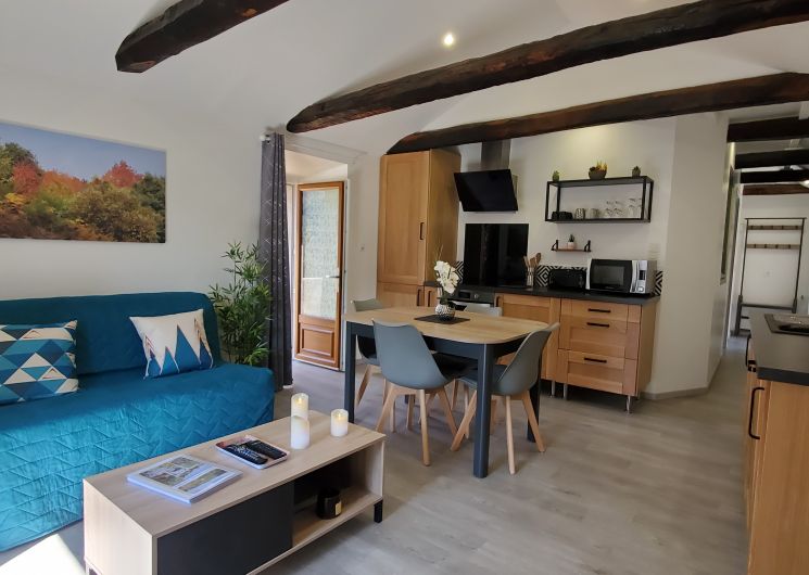 Nice renovated house of 40 m2, comfortable and cosy, fully equipped with balcony terrace. Beautiful living room with kitchenette, lounge area (1 BZ 140/190), 1 bedroom (2 twin beds 80/200), 1 bathroom with large Italian shower, large sink and toilet. Close to the N106, very easy access, free car and motorbike parking, 1 km from the supermarket in St Privat de Vallongue.
