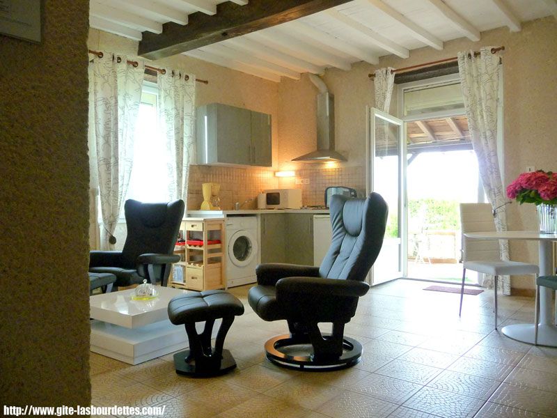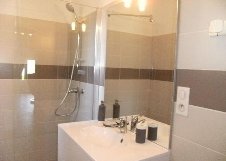 Accommodation comprises: living room with kitchenette (2 armchairs, MO, LL), 1 bedroom (1 double bed + 1 single bed + cot), shower room with walk-in shower and WC. Covered terrace with garden furniture and barbecue. Lawn area. Packed basket on arrival. High chair and cot available. The price includes: sheets, household linen and towels. Pet supplement: 30 Euros per pet/week. Optional extras: cleaning, extra bed, free wifi in the immediate vicinity of the owner’s house. Enclosed grounds in front of and around the gîte.