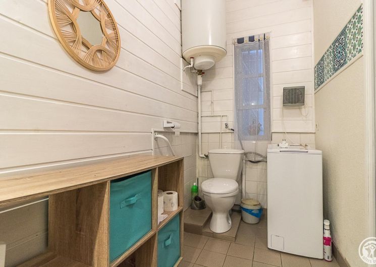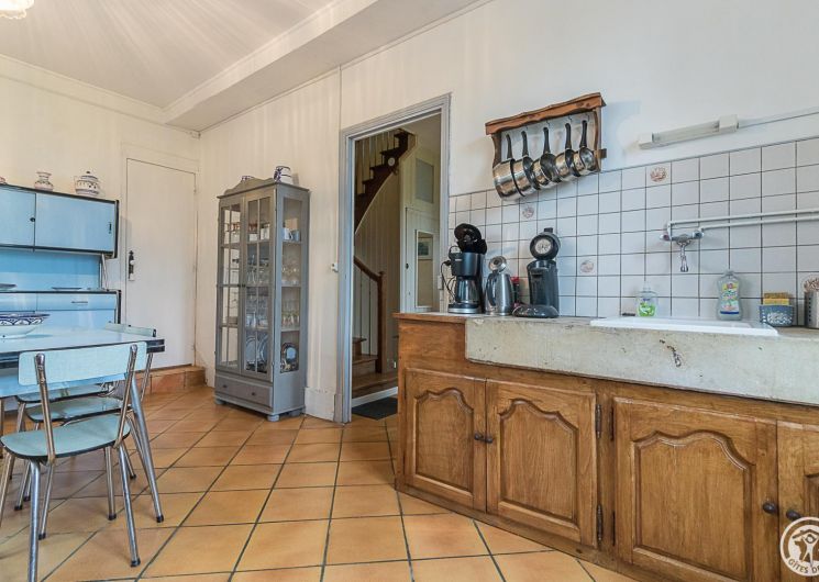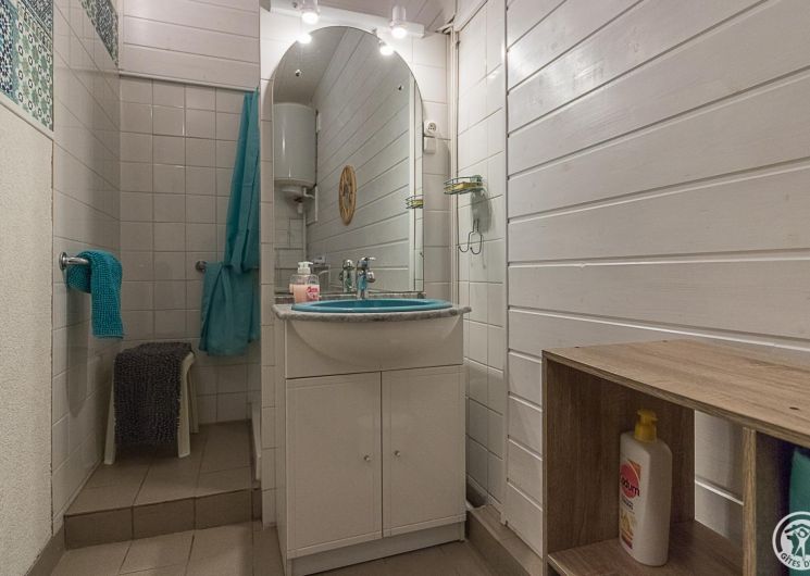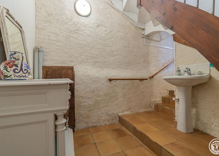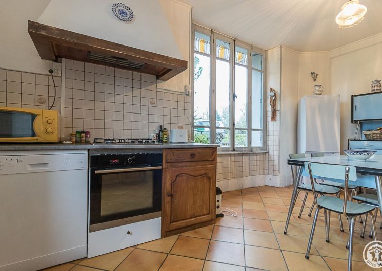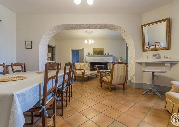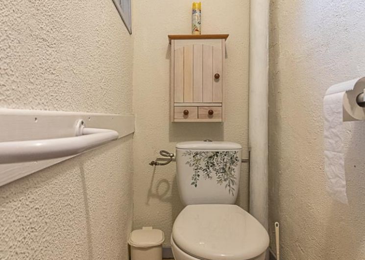 Ground floor: entrance hall, kitchen with dining area, large living room (dining room and sitting room with fireplace), bedroom-study with direct access to the terrace (BZ for 2 people 140cm with en suite shower room/WC (washing machine)), separate WC with washbasin in the hallway.