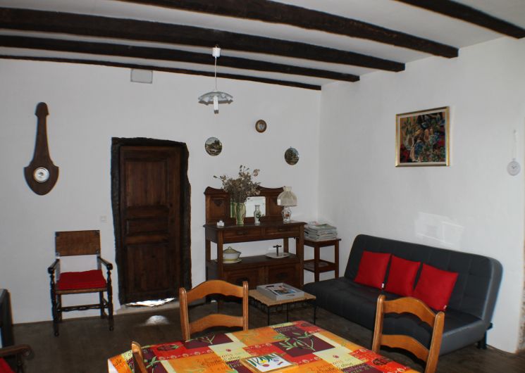 Salle de séjour avec coin-cuisine, 2 chambres (1 lit 1,40m, 1 lit 1,20m, 1 lit 0,90m), salle de bains avec wc. Terrain clos, salon de jardin.