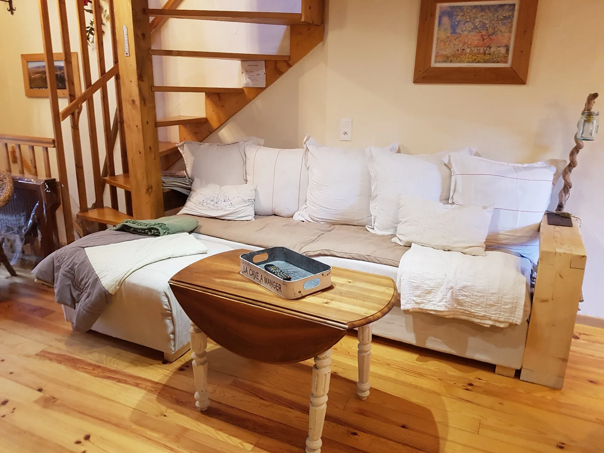 Accommodation adjoining other houses. Access on the same level by level 2: American equipped kitchen/living room (sofa), mezzanine (1 bed 140) – On level 1: 1 bedroom (3 beds 90), shower room with large shower, independent WC. On the first floor: garage- Equipment: dishwasher, microwave, electric oven, freezer, television, fireplace/insert, washing machine, ping-pong Outside: Shaded terrace 12 m² (garden furniture, barbecue, deckchairs) Activities: Hiking (0.5km), Outdoor swimming pool (7kms), Fishing (6kms), Tennis (On the spot in Coupiac), River (6kms, the Tarn), Horse riding and Canoeing (15kms) Electric heating