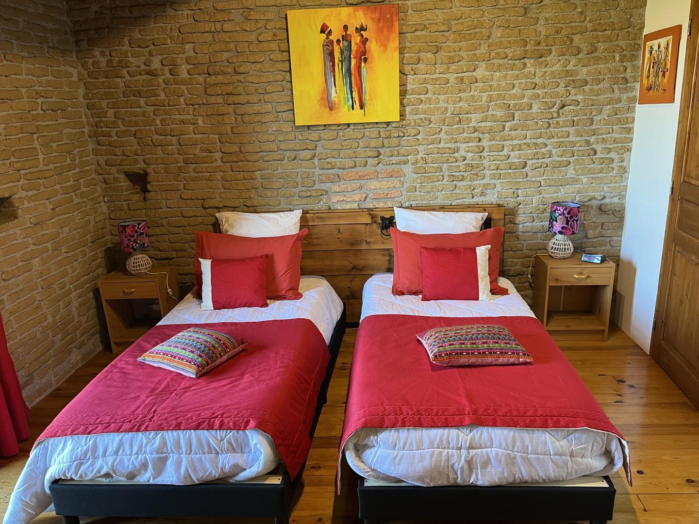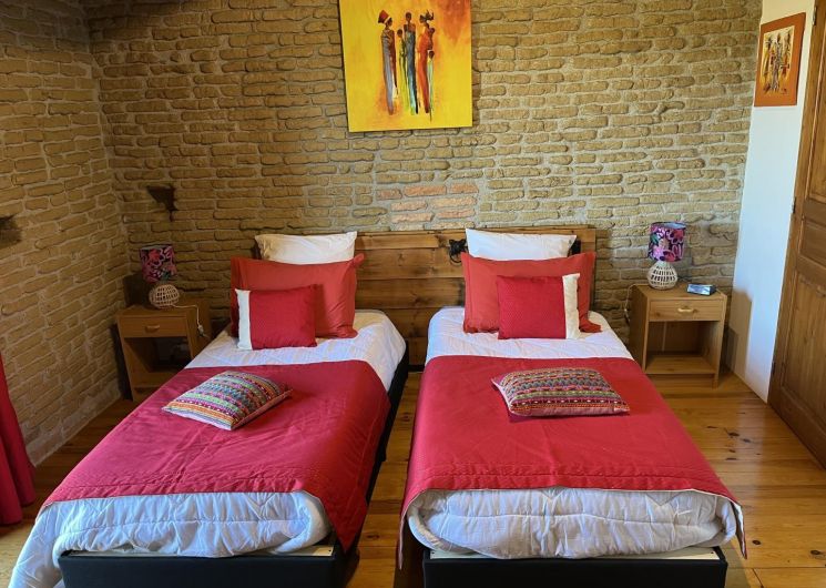– Chambre 2 : 2 lits simples (jumelables) (90×200), salle d’eau privative, environ 15 m²