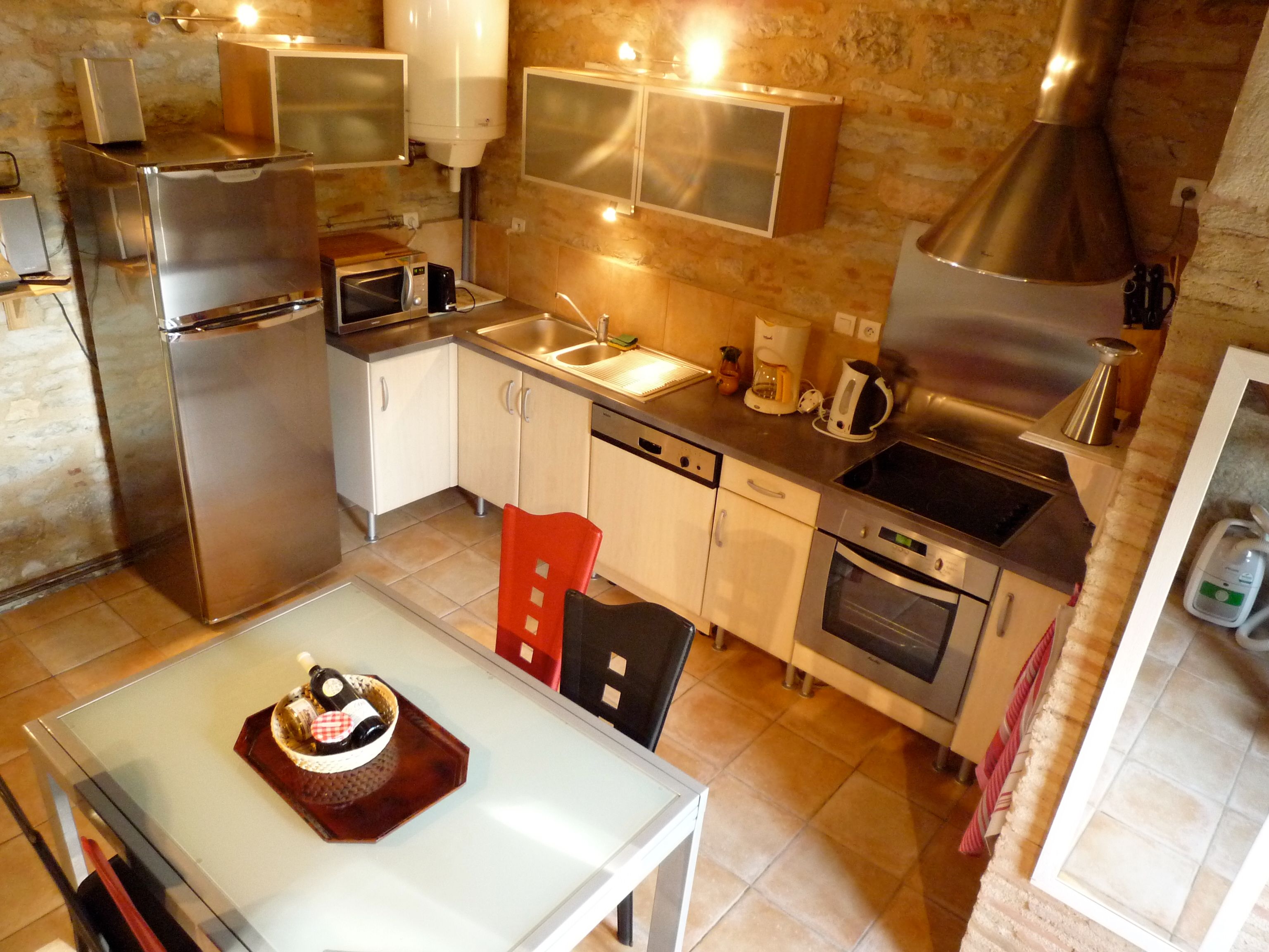 On the ground floor: living room with integrated kitchen area (microwave, dishwasher), independent WC.