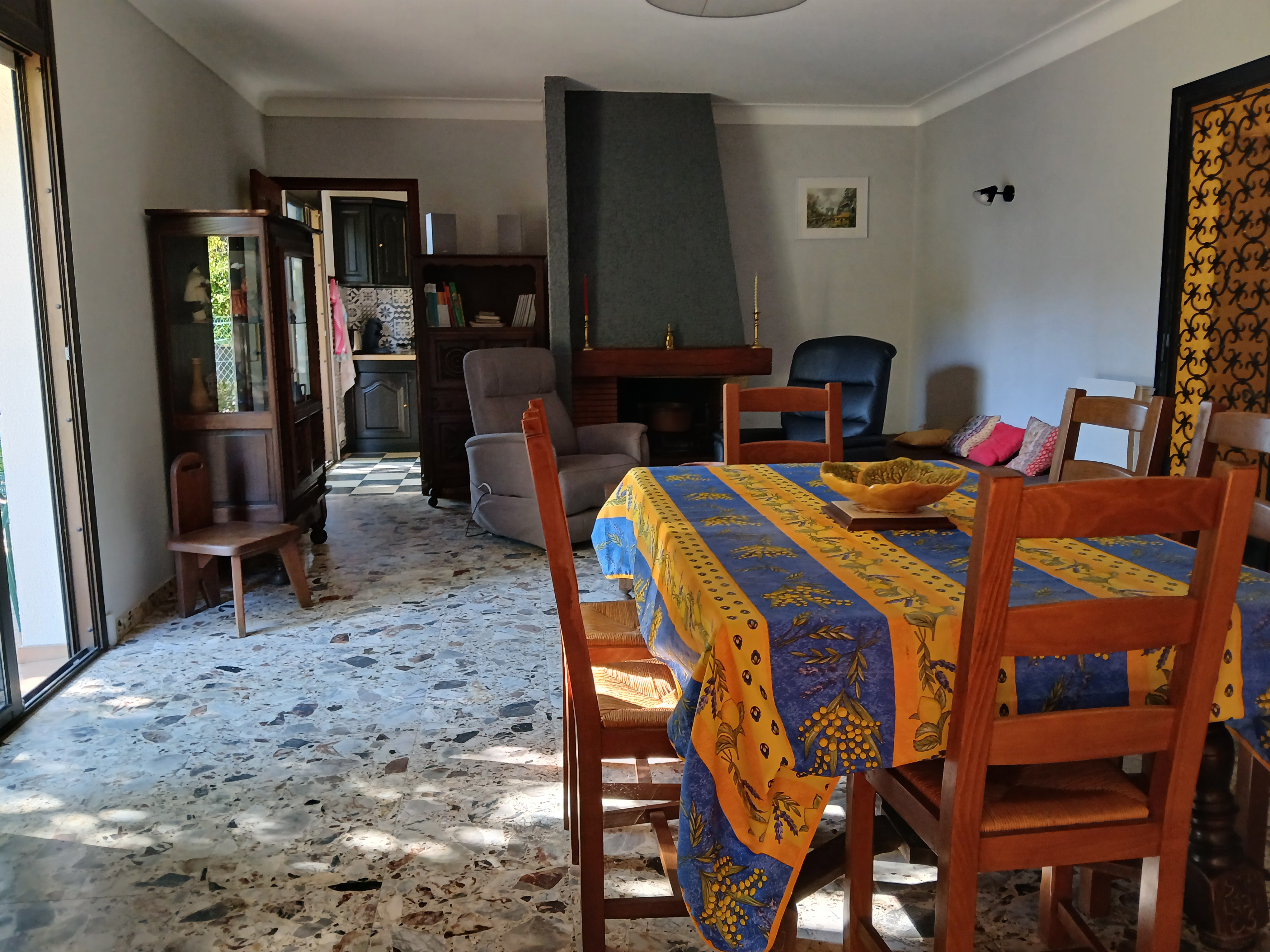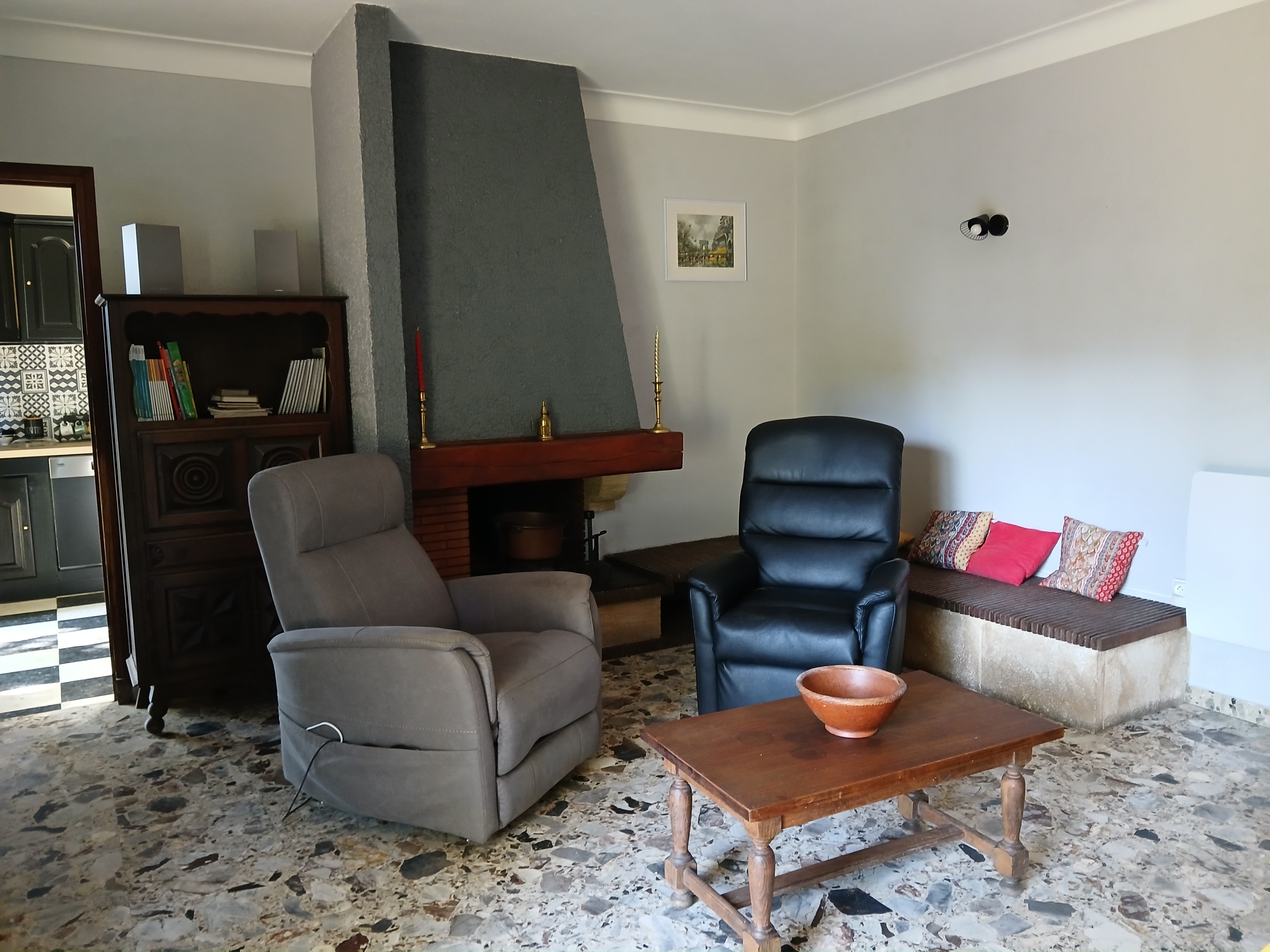 At the entrance, a loggia invites you to relax or read a book. The living room opens directly onto the terrace. You can imagine a convivial table, or a more intimate, cocooning space in front of the fireplace (functional in mid-season). The separate, fully-equipped kitchen is ready to use for your home-cooked meals. In summer, you can also take advantage of the barbecue to grill and enjoy local meats.