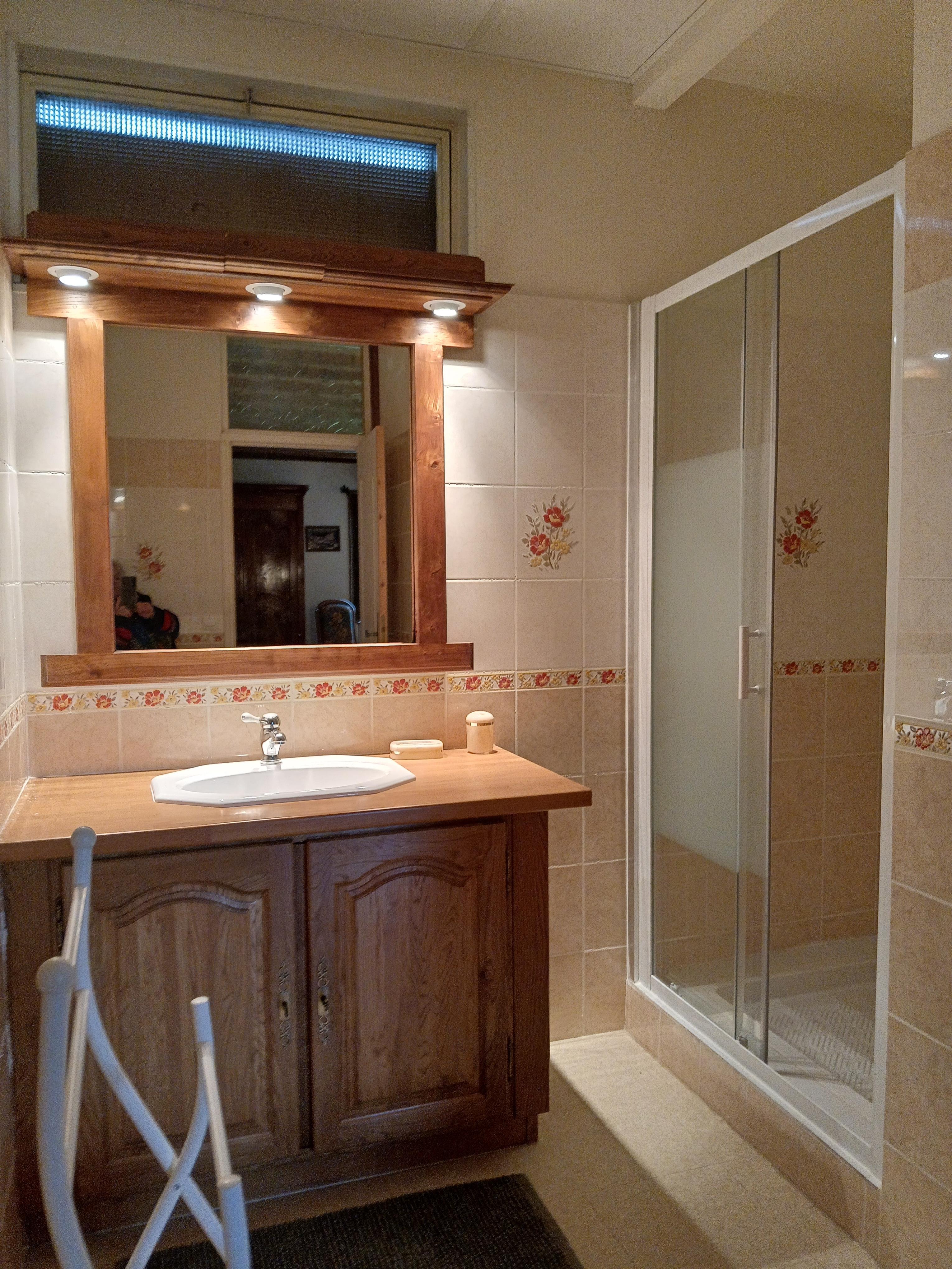 Upstairs, a cosy room can be used as an office, games room, reading or video corner (with tv and dvd), lounge with sofa, around the masterpiece of decoration: the old forge bellows! Another bathroom with shower and toilet is also accessible.