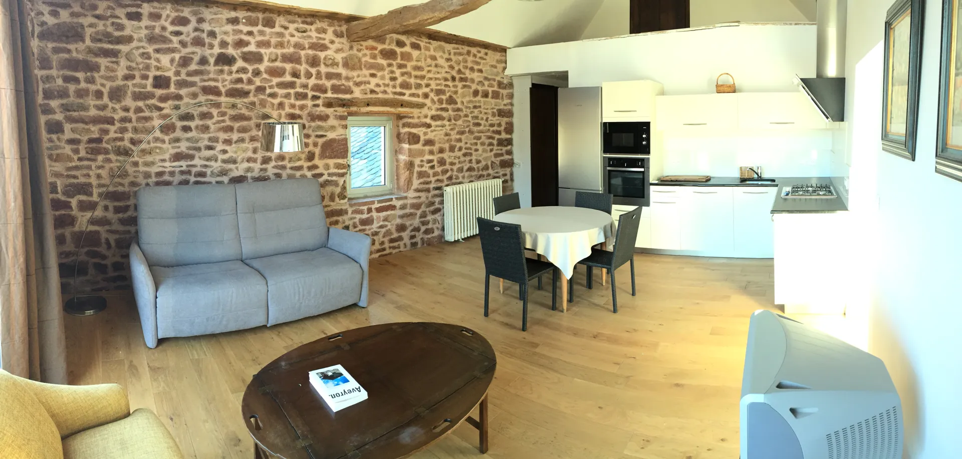 Deux chambres, pièce à vivre avec cuisine équipée donnant sur une terrasse. Tout confort. Chemin d’accès et parking indépendants.