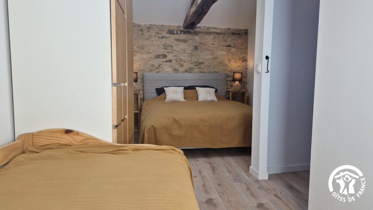 – A l’étage, les deux chambres comprenant dans la première un lit double en 140cm, et dans la seconde un lit double en 160cm et un lit simple en 90cm.