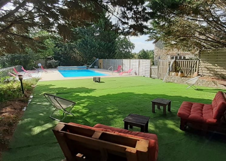 A l’étage : 1 chambre et sanitaires privés, 1 chambre (2 lits de 90 cm) et sanitaires privés