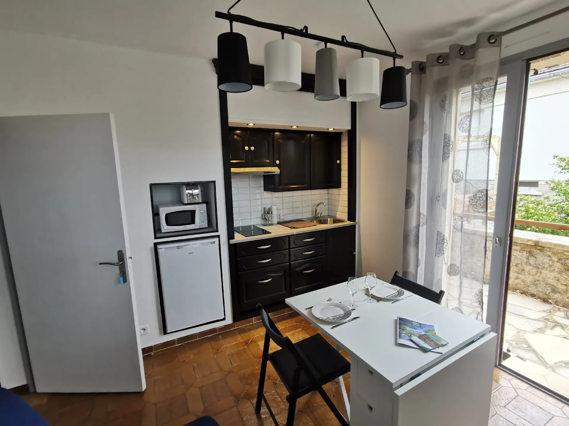 1 pièce de vie avec cuisine aménagée et un canapé type BZ de 140X190