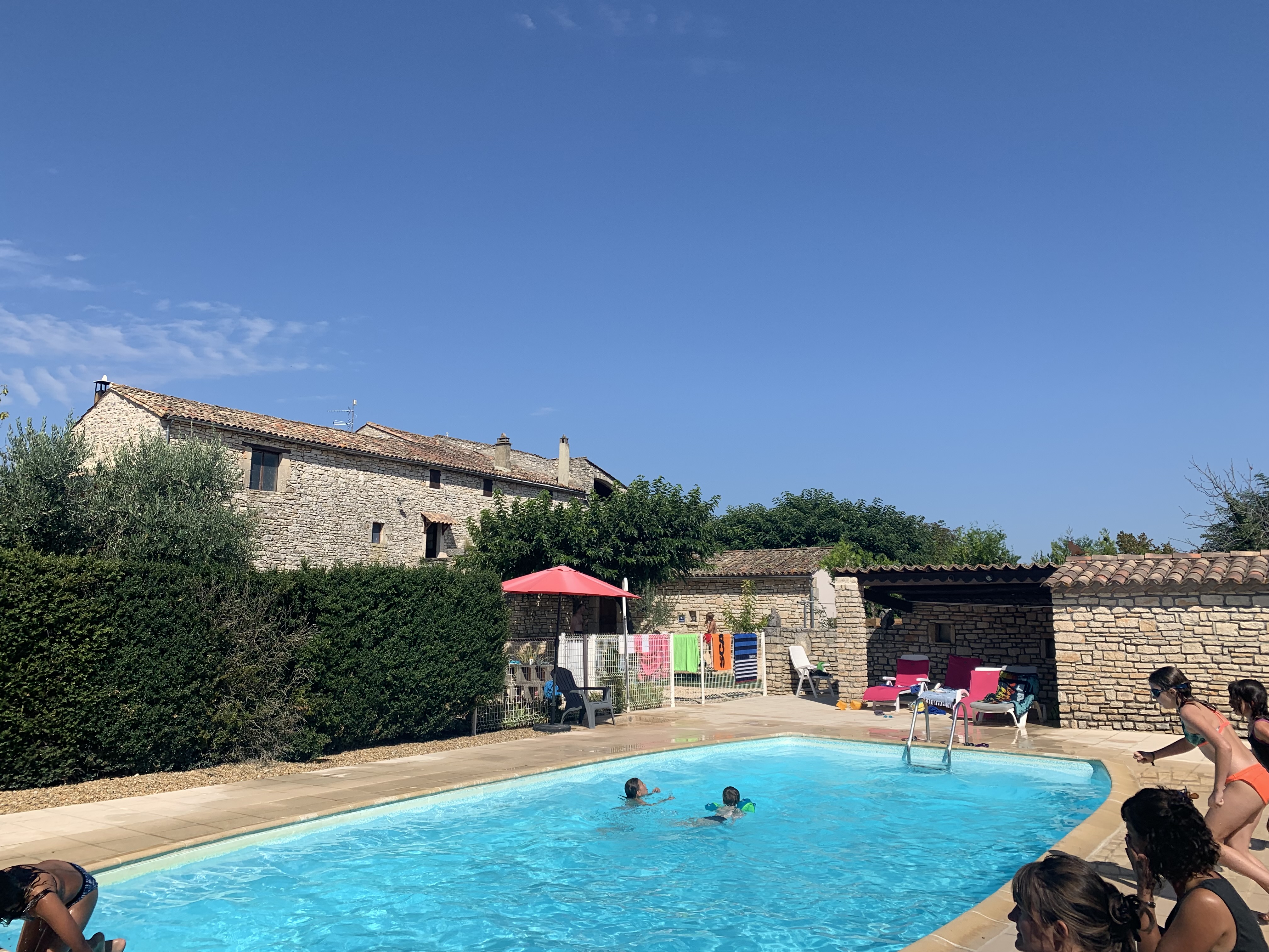 Air-conditioned 68 m² holiday cottage for 4 people, located on the upper floor of our farmhouse, in a peaceful setting. It includes a heated swimming pool and access to a private beach on the “Cèze” river, just 2 km away.
