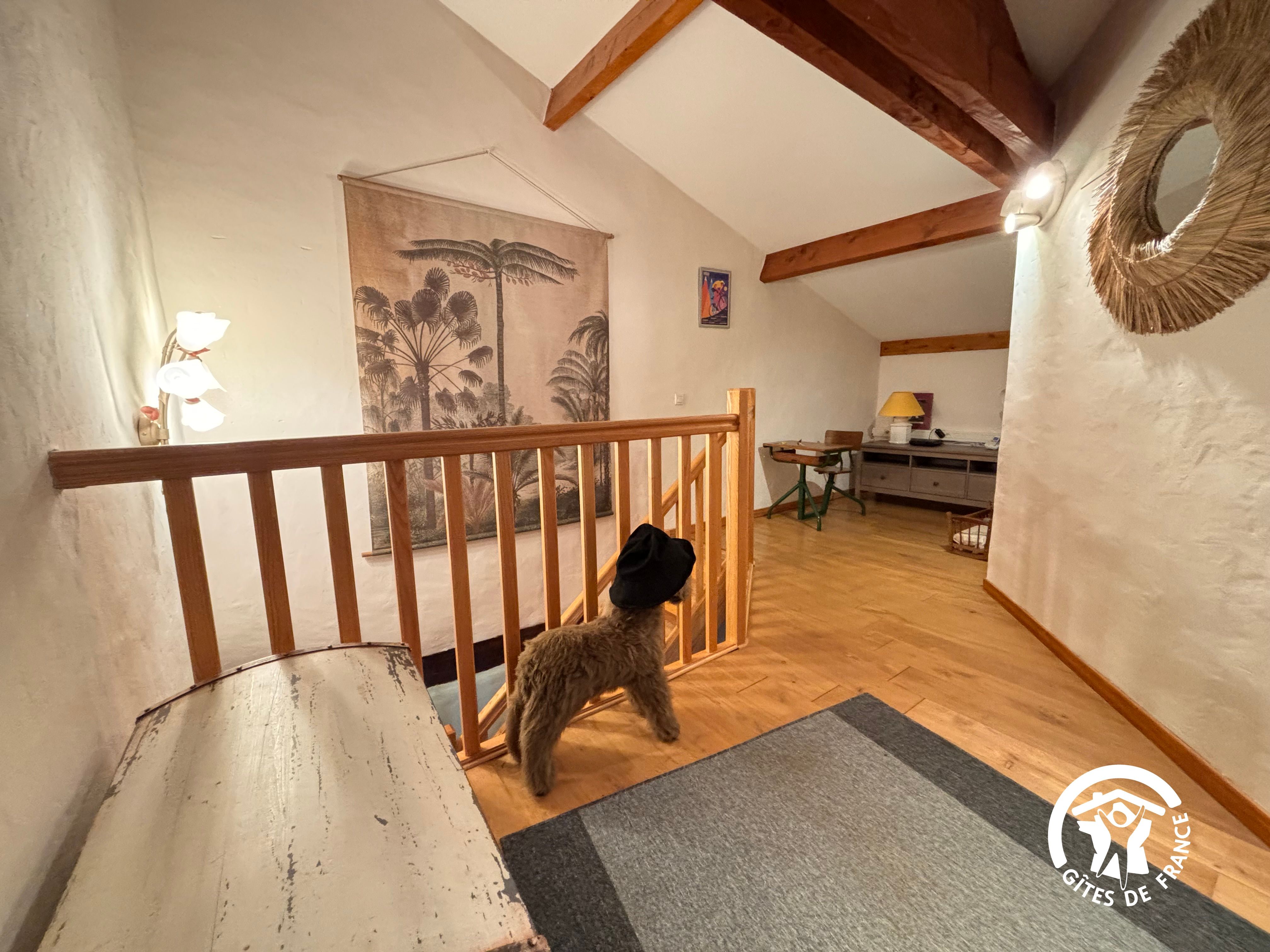 À l’étage, trois chambres supplémentaires, chacune avec un lit 160, vous offrent un refuge paisible après une journée passée à explorer les environs. Une salle d’eau avec WC est également à disposition.