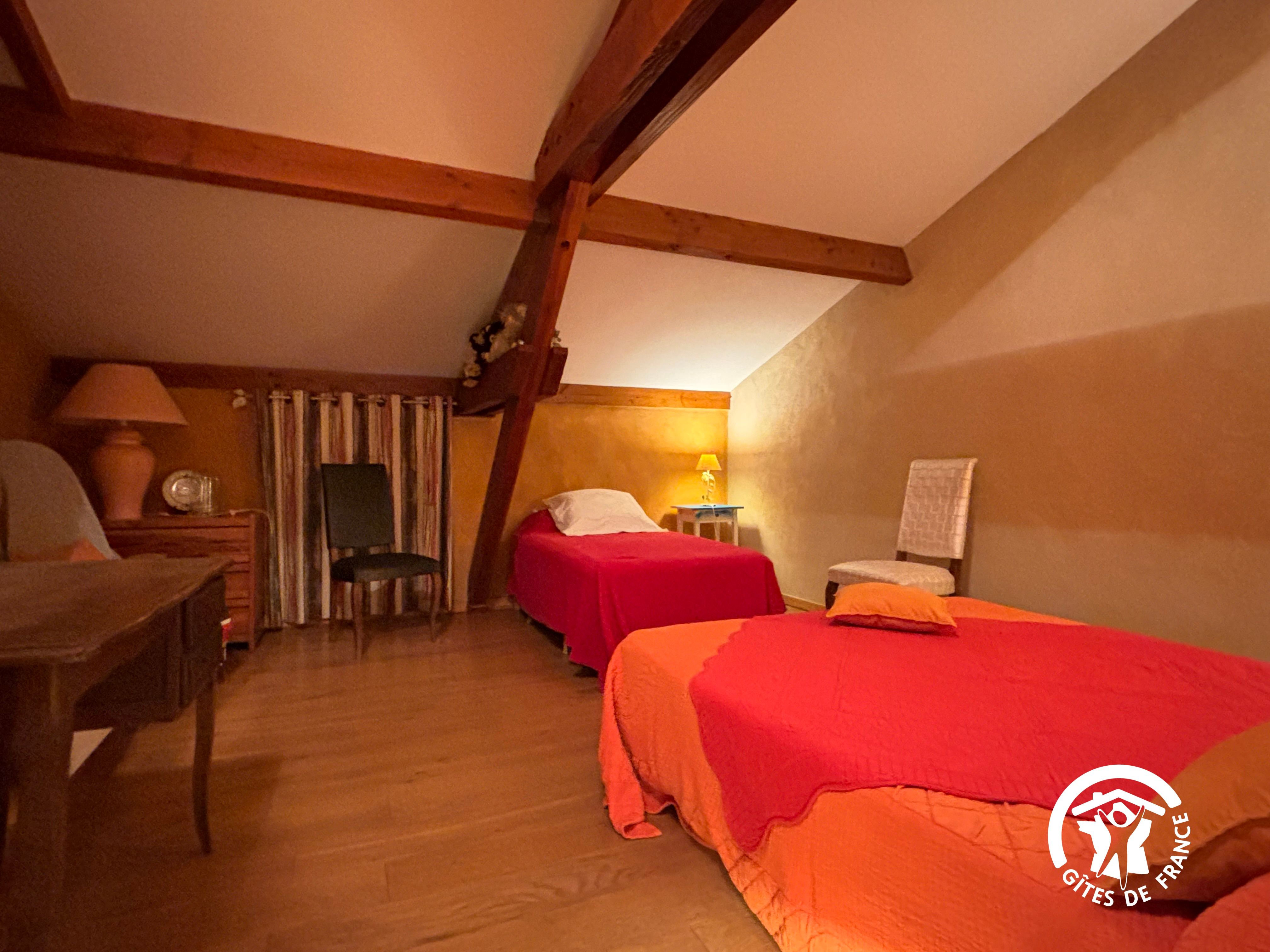 Au rez-de-chaussée, deux chambres chaleureuses, chacune dotée d’un lit 160 et d’une salle d’eau avec WC privatif, vous accueillent dans un confort absolu. Une cuisine entièrement équipée, avec la possibilité de profiter de la cuisine professionnelle attenante, un salon convivial et une salle à manger où règne une ambiance accueillante complètent cet espace.