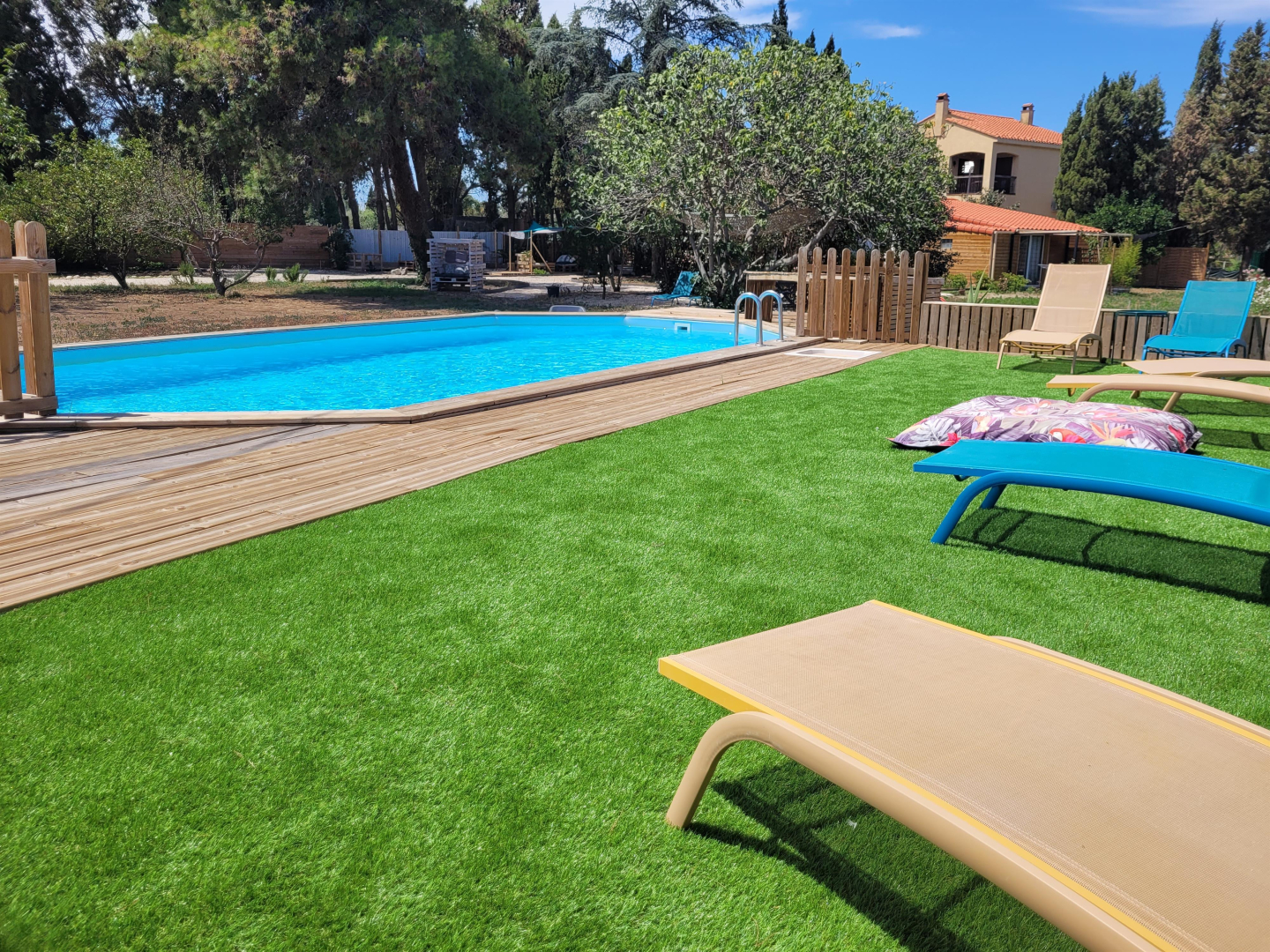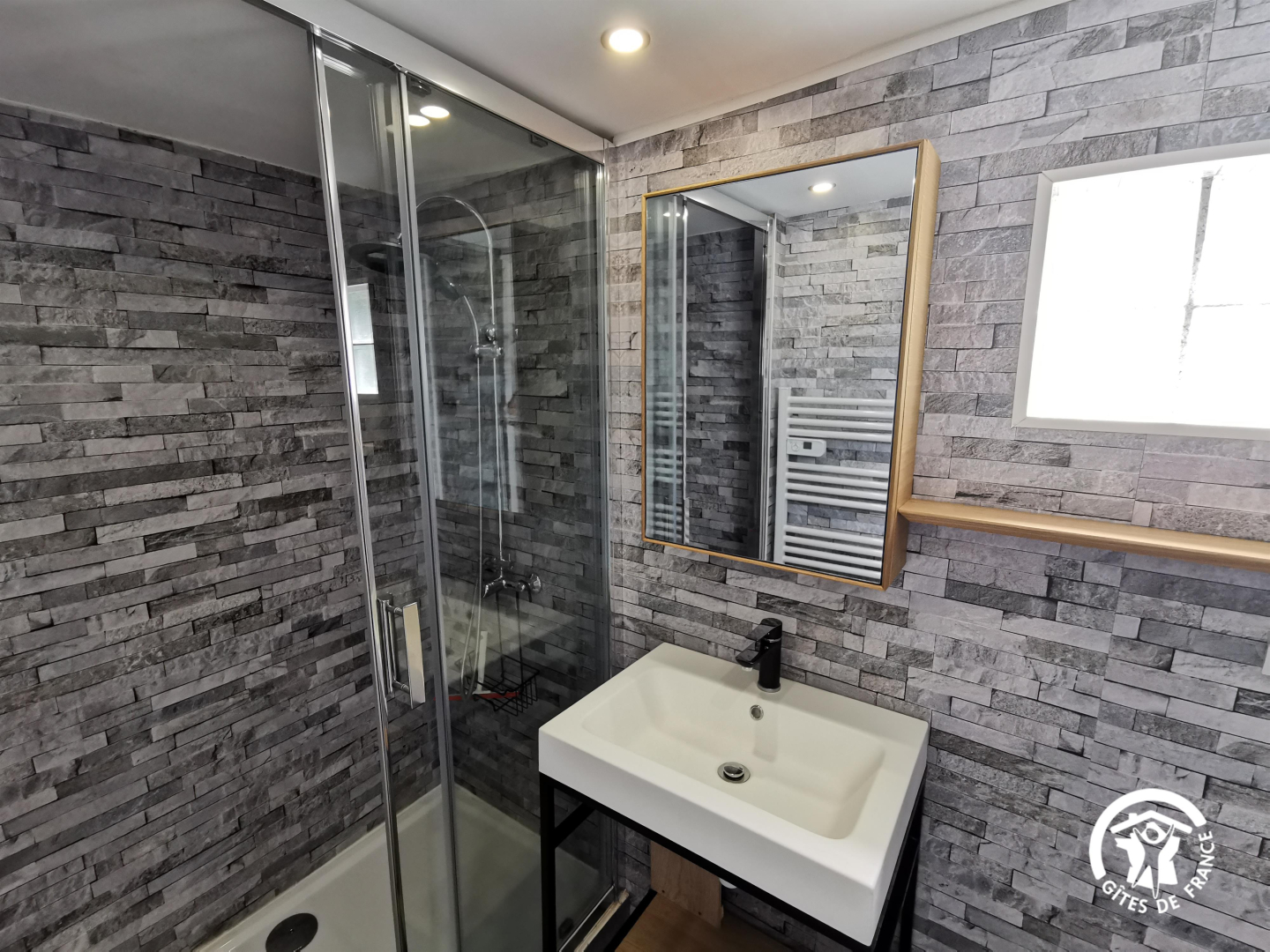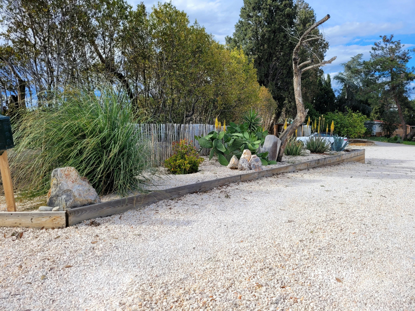 Ground floor: Veranda opening onto a private 8 m² terrace with garden furniture and plancha. Fitted kitchen: freezer, microwave, dishwasher with dining area. Sitting room with a 140 x 190 double sofa bed, leading to a bedroom with a 140 x 190 single bed. Shower room (wc) Mobile air conditioning available. Two shared washing machines in a lean-to outside the property. Secure parking is available, as is a covered shelter for your motorbikes. The property includes the owners’ residence, an unusual boat, 3 gîtes and a guest room. Take advantage of the shared, unheated above-ground swimming pool (8.57 x 4.57 x 1.45), open from mid-May to mid-October, with opening hours from 10am to 8pm. There’s also a large communal garden and a private terrace for unforgettable moments of conviviality.