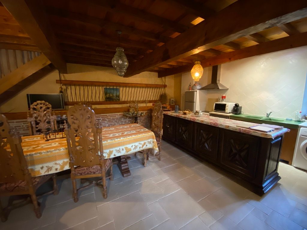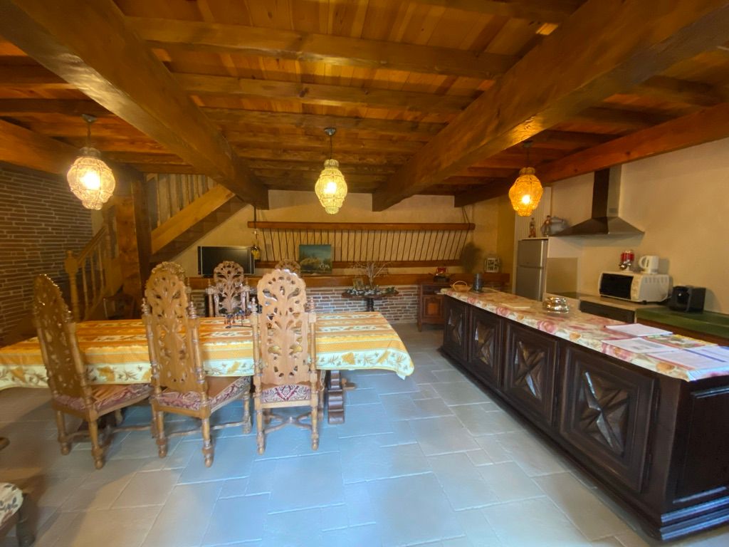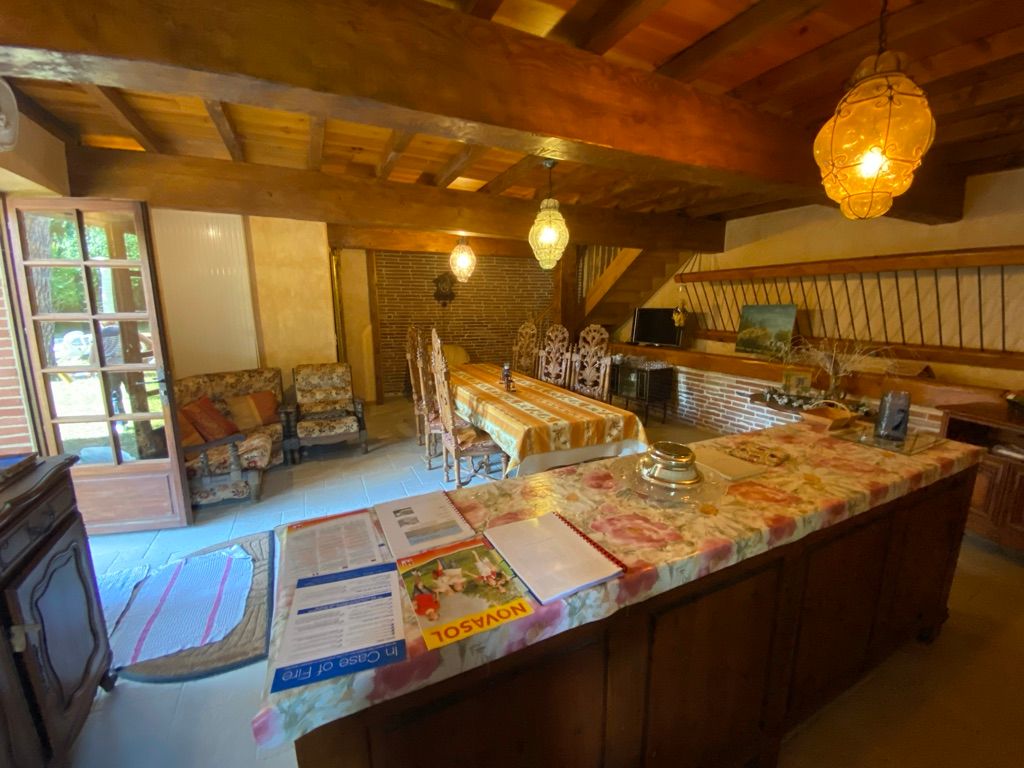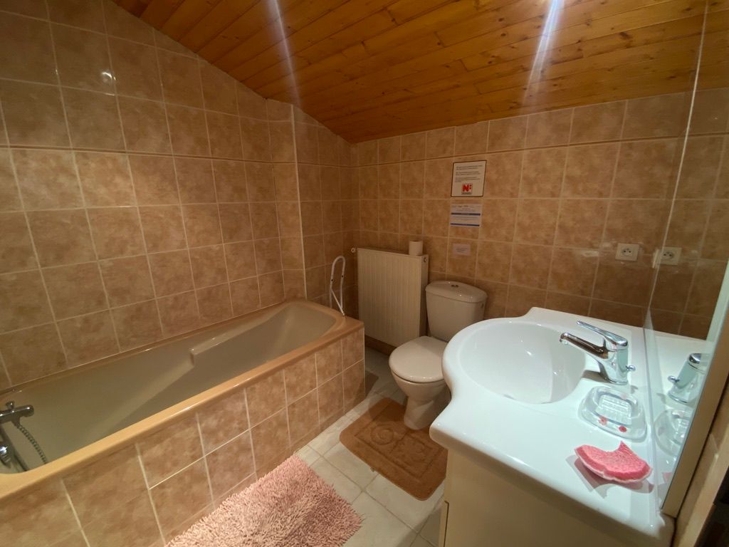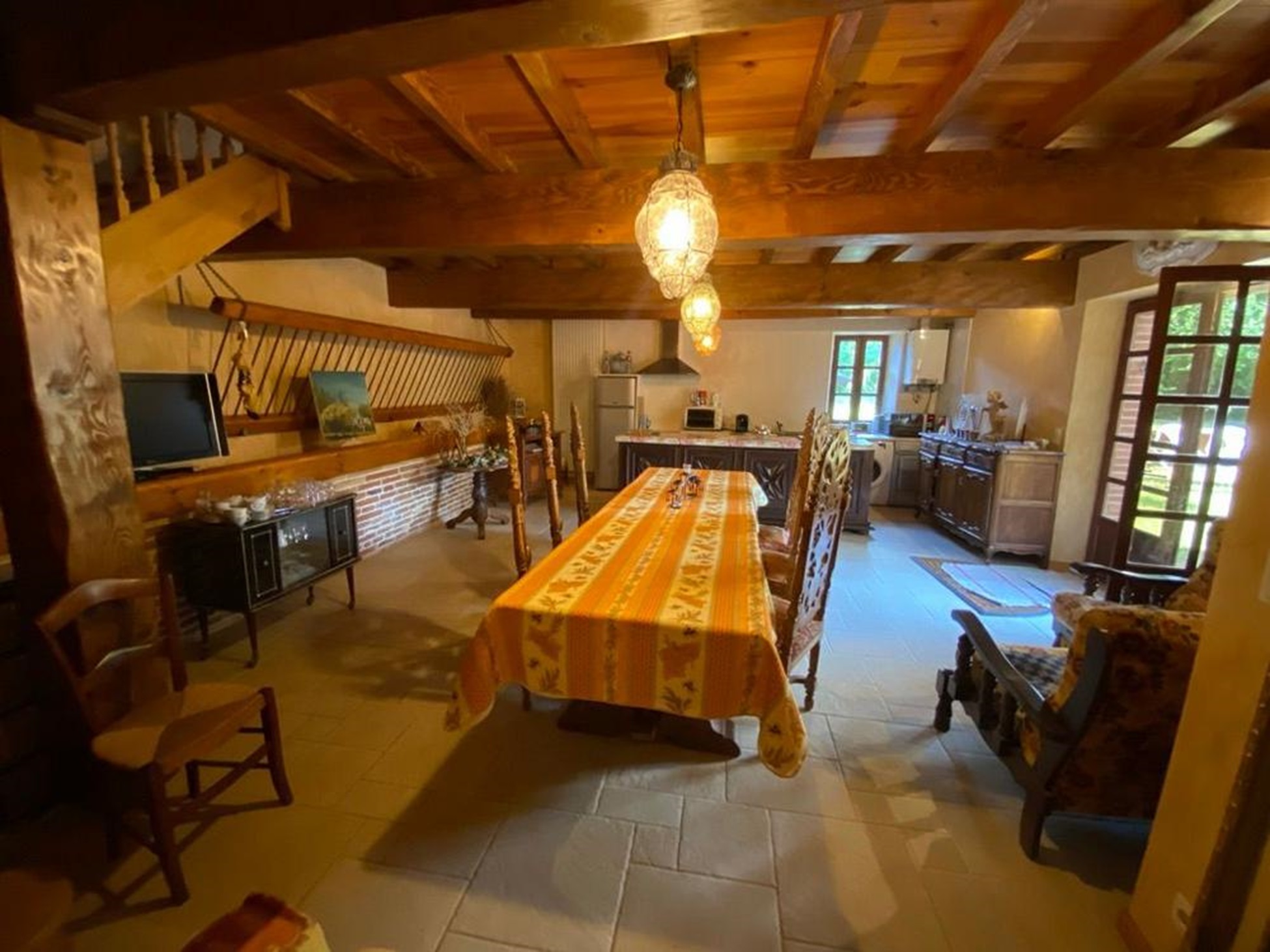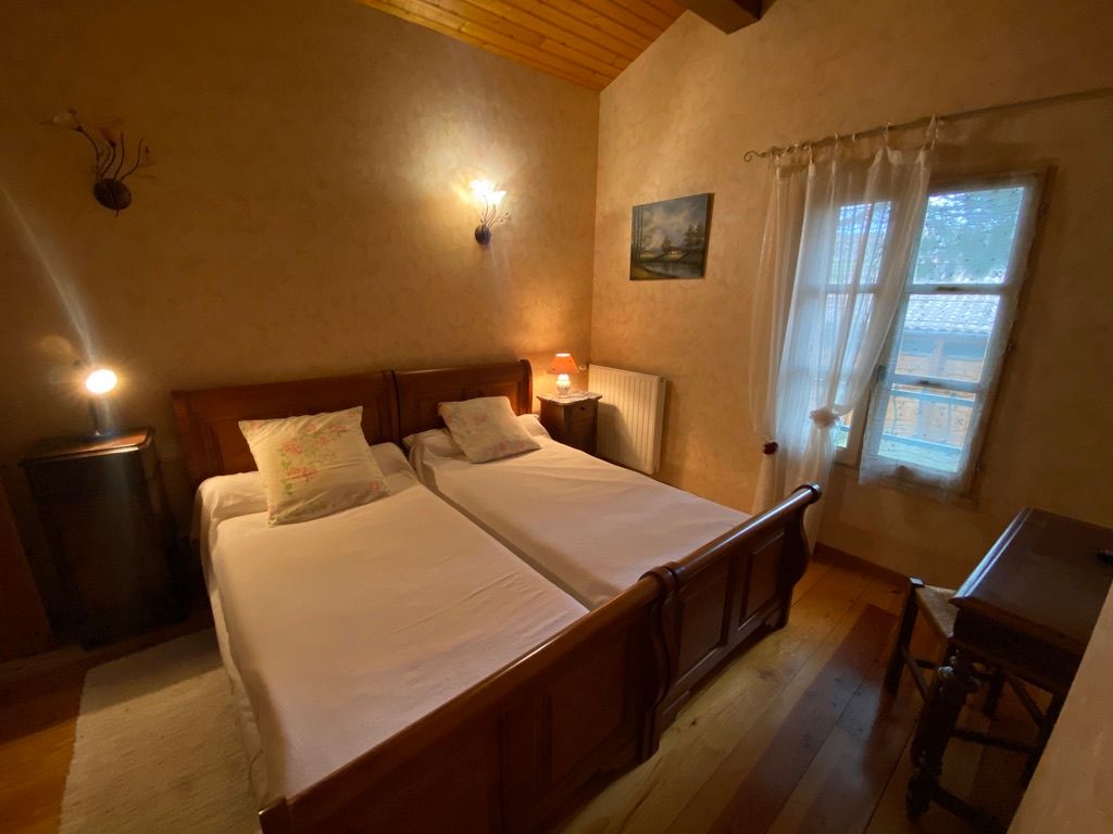 Ground floor: living room with dining area, sitting room and kitchen (gas cooker with hob and oven, tumble dryer, washing machine, fridge and freezer), sitting area with sofa and armchairs. TV. On the 1st floor, a bedroom with 1 double bed (140cm), (en-suite bathroom with wc). One bedroom with 2 single beds (0.90cm) (en-suite bathroom with wc). TV in each room. No wifi. Bed linen provided and included in the price. No bathroom linen. Outside area: large fenced garden with trees. Garden furniture for the accommodation and shared barbecue.