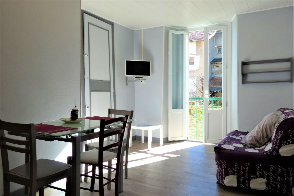 Appartement (35 m²), dans une maison en centre-ville, sans vis-à-vis et exposé sud-est (rue sans issue pour les voitures). Situé au 1er étage, cet appartement se compose d’un séjour avec cuisine équipée (micro-ondes, four, frigo), d’une chambre avec un lit 140 cm et d’une salle d’eau. Chauffage électrique, télévision. Charges comprises, sauf taxe de séjour. Possibilité location de draps: 10€ la paire. Lit bébé sur demande. Local à skis et vélo au rez-de-chaussée. Lave-linge commun. Parking gratuit à proximité. Proche de tous commerces, des Thermes du Teich et de la télécabine menant à la station Ax 3 Domaines. Taxe de séjour en sus (0,94€/personne/jour).