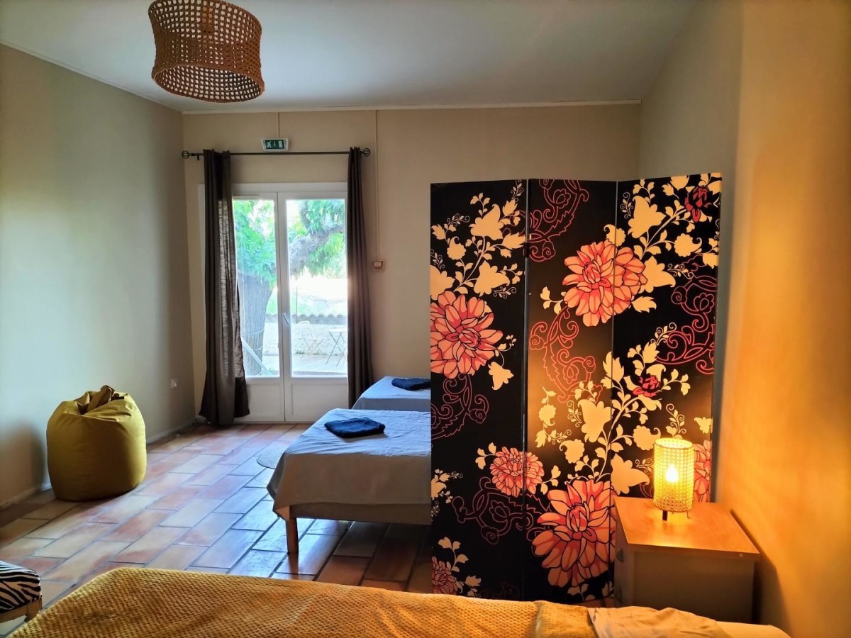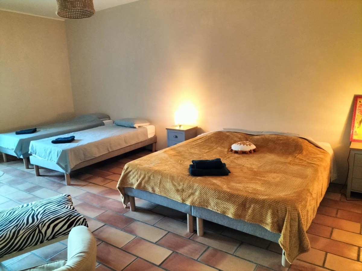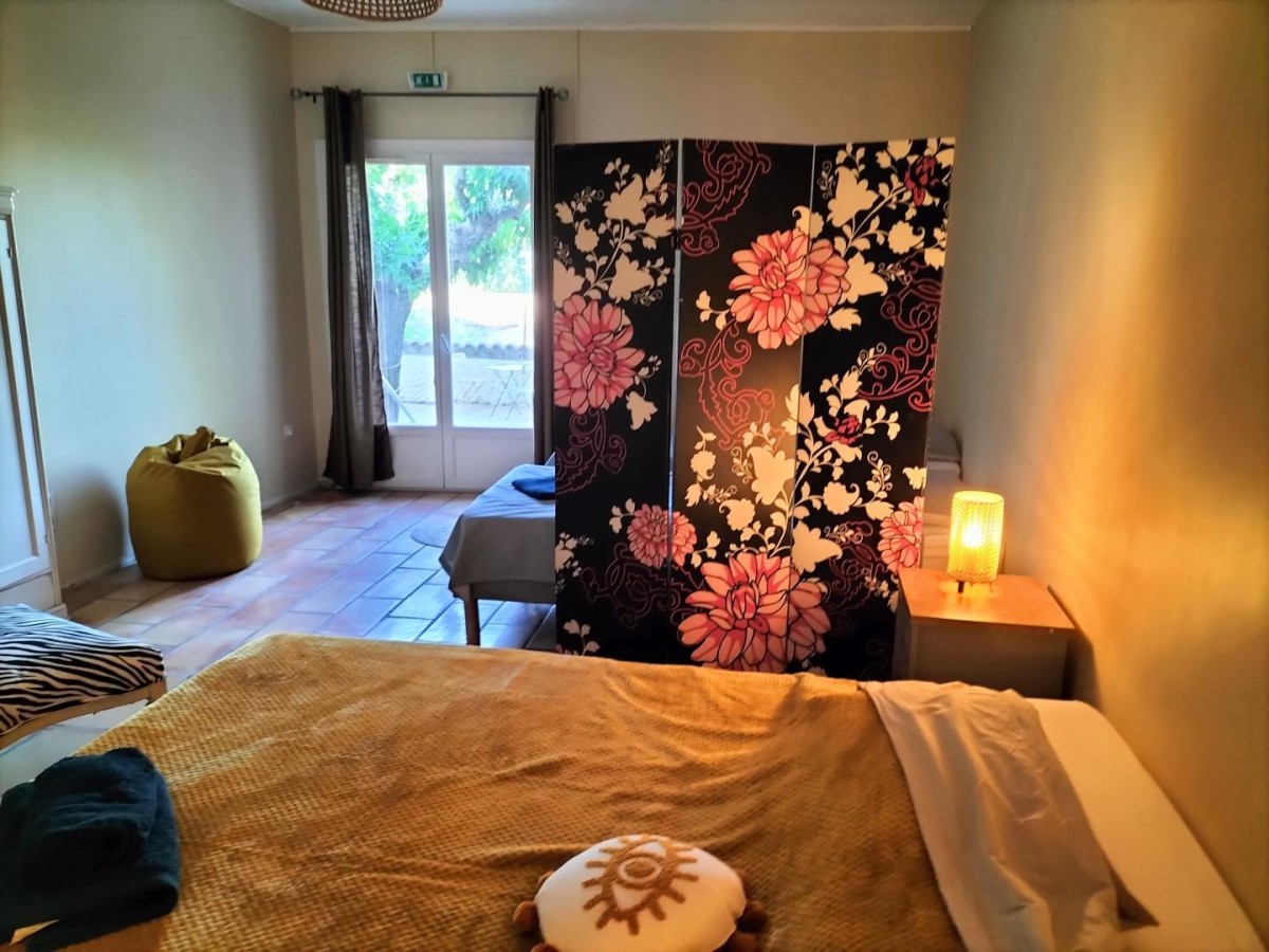 Dans le charmant village de Saint-Jean de Fos, venez découvrir la maison d’hôtes l’Arbre du Voyageur qui dispose de cinq chambres d’une à quatre personnes, toutes agréablement décorées ! Vous pourrez aussi vous détendre dans un salon confortable et profiter d’un bel extérieur de 100m², idéal pour prendre le petit-déjeuner sous le soleil de l’Hérault, le tout avec une vue superbe sur les alentours. Vous pourrez profiter d’un petit-déjeuner continental très complet, avec du sucré mais aussi du salé : brioche et gâteaux maison, fruits, jus de fruits, yaourts, confiture maison, pain maison ou local, thé, café, lait… Profitez de votre séjour pour visiter Saint-Jean de Fos, un véritable village de potiers et d’artisans avec son centre historique charmant et ses ruelles médiévales. N’hésitez pas par ailleurs à vous rendre à l’Argileum, authentique atelier du XIXème siècle au cœur du village aujourd’hui transformé en musée pour découvrir le processus de fabrication de la poterie et les pratiques traditionnelles des potiers de Saint-Jean de Fos. Découvrez également le patrimoine historique de Saint-Guilhem-le-Désert et ses randonnées célèbres comme celle du Cirque de l’Infernet, le décor naturel des Gorges de l’Hérault, idéales pour se baigner, pêcher ou faire du kayak, ou encore le Pont du Diable. Se trouvent également à proximité le lac du Salagou et le site naturel du cirque de Mourèze, sites incontournables de la région. Vous pourrez profiter d’une place dépose-minute gratuite devant la maison d’hôtes, et vous pourrez vous garer sur un des parkings publics de la ville aux alentours. – En famille ou entre amis, passez d’agréables vacances dans cette grande chambre de 30m² pour quatre personnes avec un lit double en 180×200 cm séparable en deux lits 90x200cm ainsi que deux lits simples 90x200cm. Vous profiterez d’une salle d’eau privative avec douche, WC et vasque avec miroir.