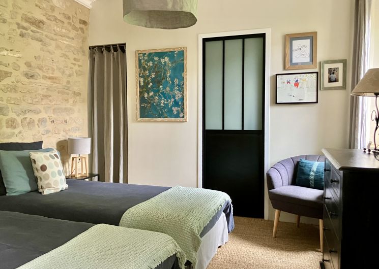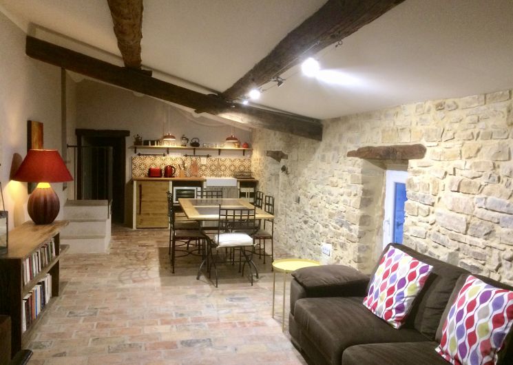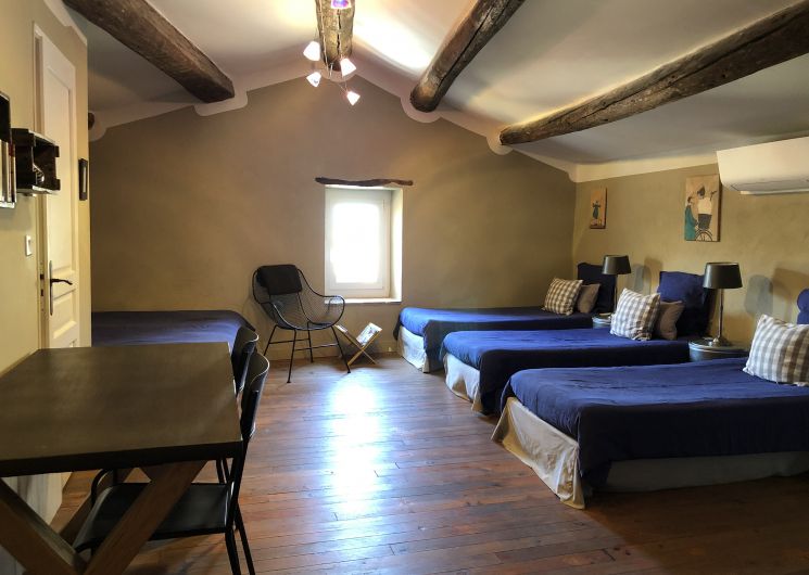 Located in the heart of a village near Vézénobres, the gîte is housed in a restored 18th century silkworm farm. The building is composed of 3 buildings around a large courtyard with swimming pool.