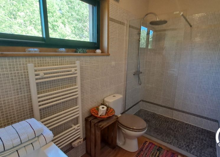 La vaste pièce à vivre se compose d’une cuisine moderne et d’équipements de qualité. Le salon confortable, se prolonge sur la terrasse en bois et son salon d’extérieur. Pour vos soirées d’hiver, un poêle à bois design, agrémentera vos soirées d’hiver. Les deux chambres à la décoration raffinée, disposent chacune d’une salle d’eau avec douche à l’italienne et wc. Literie en 160x200cm et tv dans chaque chambre.