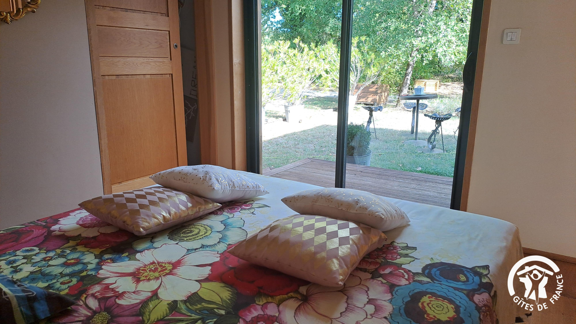 L’Ecrin de Bois est une maison indépendante à ossature bois, de plain pied, accueillant avec beaucoup de confort quatre personnes. De grandes baies vitrées s’ouvrent sur le terrain arboré de 2 hectares autour du gîte.
