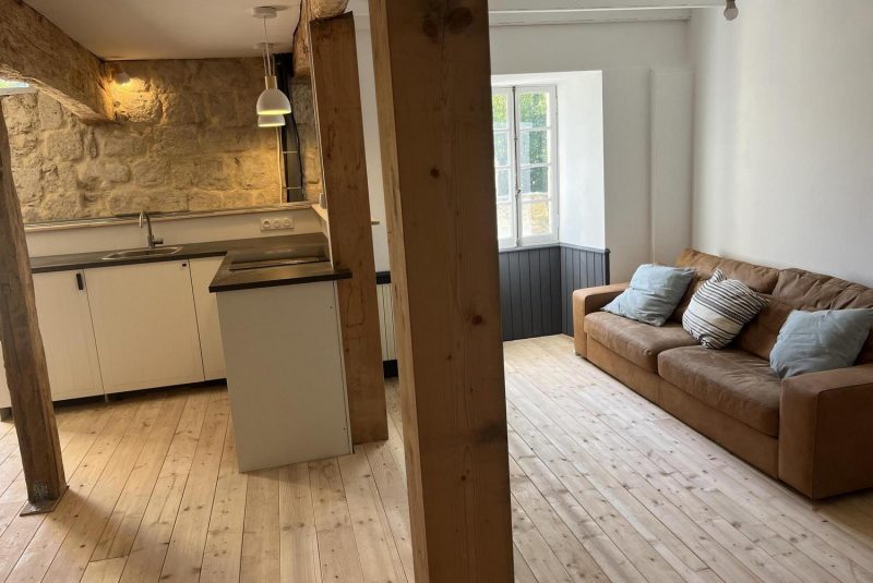 Ce gîte a été créé dans la partie la plus historique de la ferme. Vers le XVIIe siècle, se trouvaient ici les écuries du château et les anciennes pièces d’habitation. Il y a de la place pour maximum 4 personnes. Le salon et la cuisine ne font qu’un. De la cuisine vous avez une vue sur la piscine et le jardin. Par les escaliers vous avez la chambre 1 à gauche ainsi que la chambre 2. La salle de bain a une douche/lavabo/WC et se trouve à l’étage. La chambre dispose d’un joli lit double (180×200). Les lits sont faits et les serviettes sont fournies. Cette maison a une superficie de 120 m2.