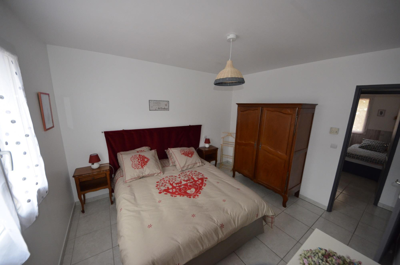 The l’Embellie gîte is set back from the road, giving you peace and quiet. It is on the first floor of a house with a basement, tastefully furnished, comfortable and bright. Access is via a large outside staircase. Large living/dining room with direct access to the terrace, fitted kitchen. There are 5 bedrooms: 3 bedrooms (1 double bed: 2 160cm beds and 1 140cm bed). One bedroom has its own private shower room. 1 bedroom (2 single beds side by side) and 1 bedroom (1 single bed). 1 office or reading room, 1 bathroom, 2 separate WCs. The enclosed, private outdoor area has a dining area with barbecue. Enclosed private parking. Garage available for storage (e.g. bikes or skis). From the gîte, you can hike at your leisure along well-maintained, perfectly signposted paths. The most beautiful walks await you to discover a particularly rich fauna and flora.