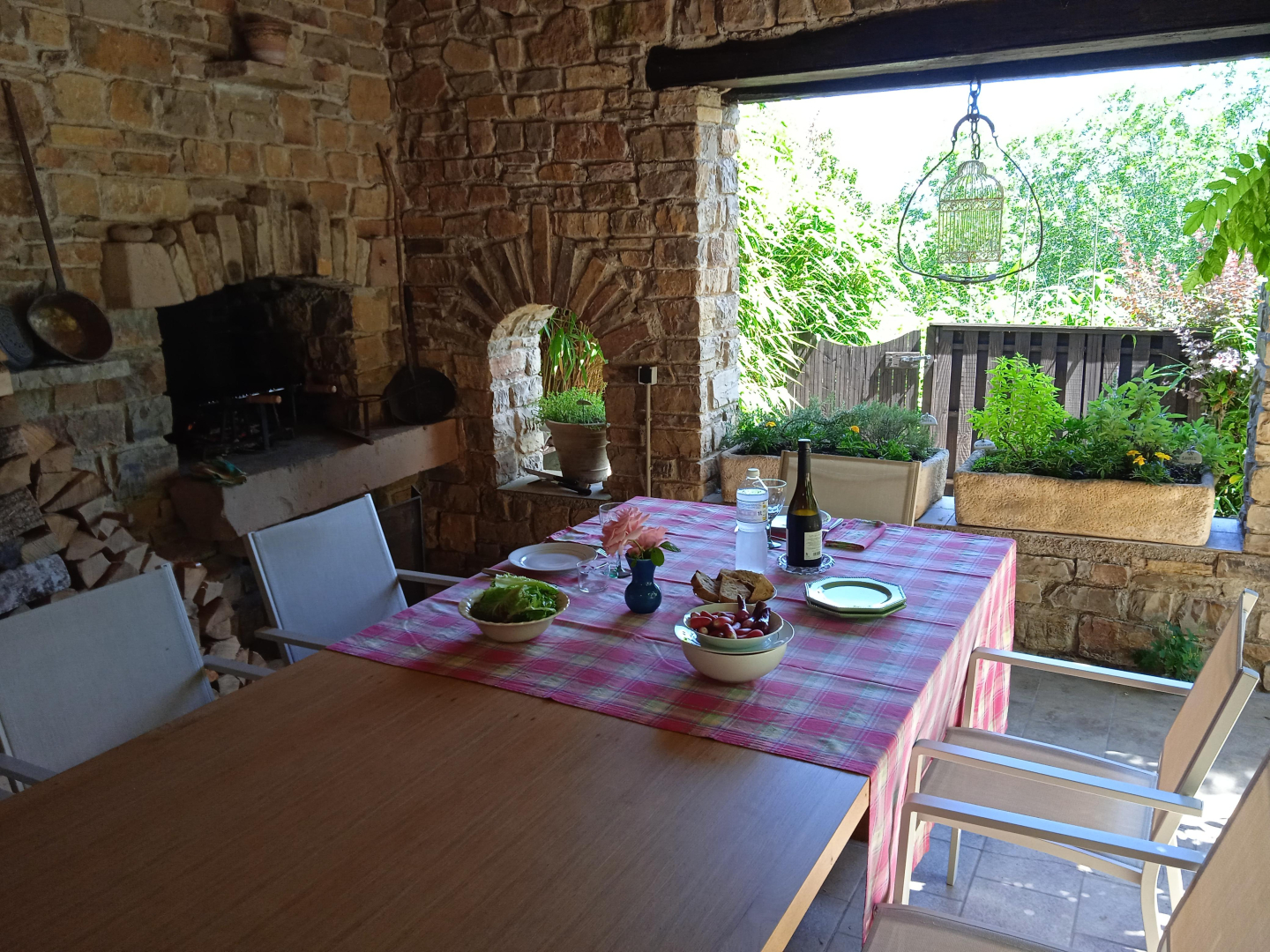 Le petit-déjeuner sera pris sous un agréable préau ou bien sur la terrasse circulaire qui offre une vue imprenable sur la vallée du Cérou et les contreforts du Rouergue., Le petit-déjeuner est composé essentiellement de produits locaux; viennoiseries et pain frais, fruits, confitures, yaourts, fromages et jambons, thé, café, tisane, chocolat … La maison s’attache à vous proposer en toutes saisons, des produits de qualité.