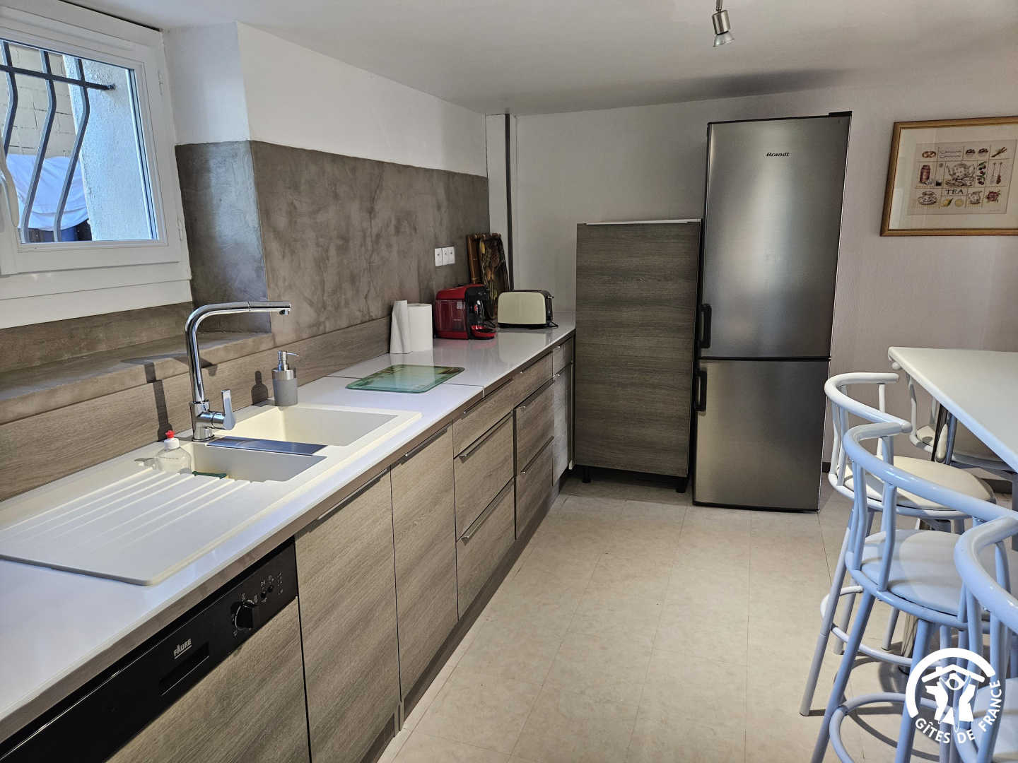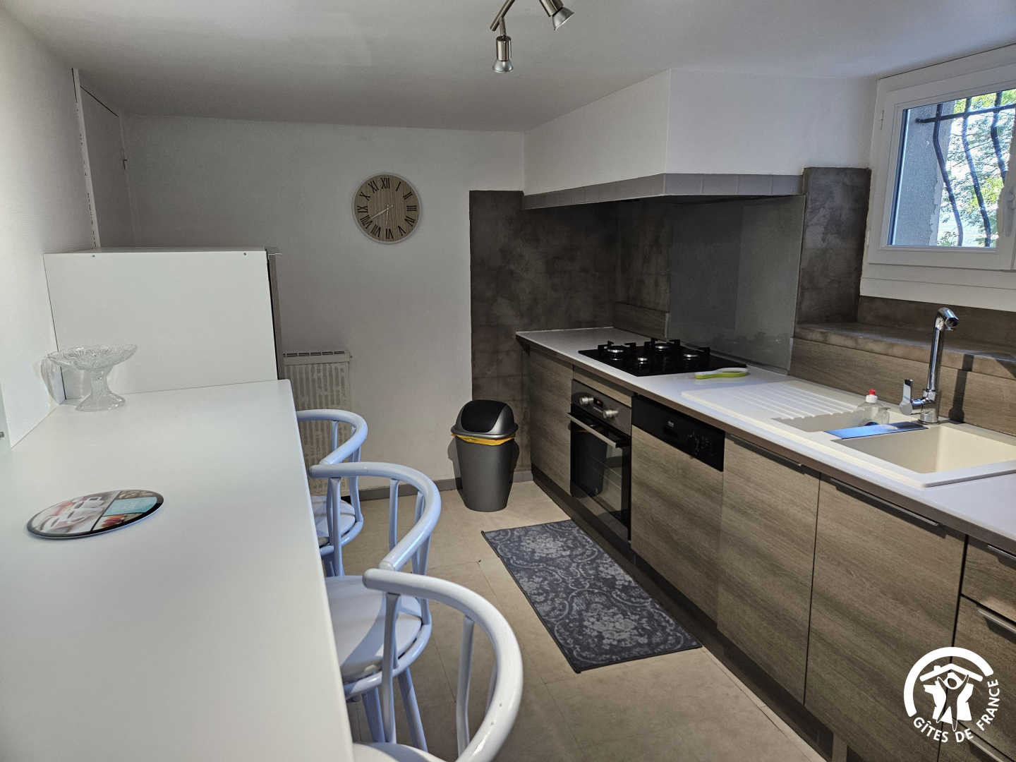 Rez-de-chaussée : cuisine entièrement équipée et salon/salle à manger.