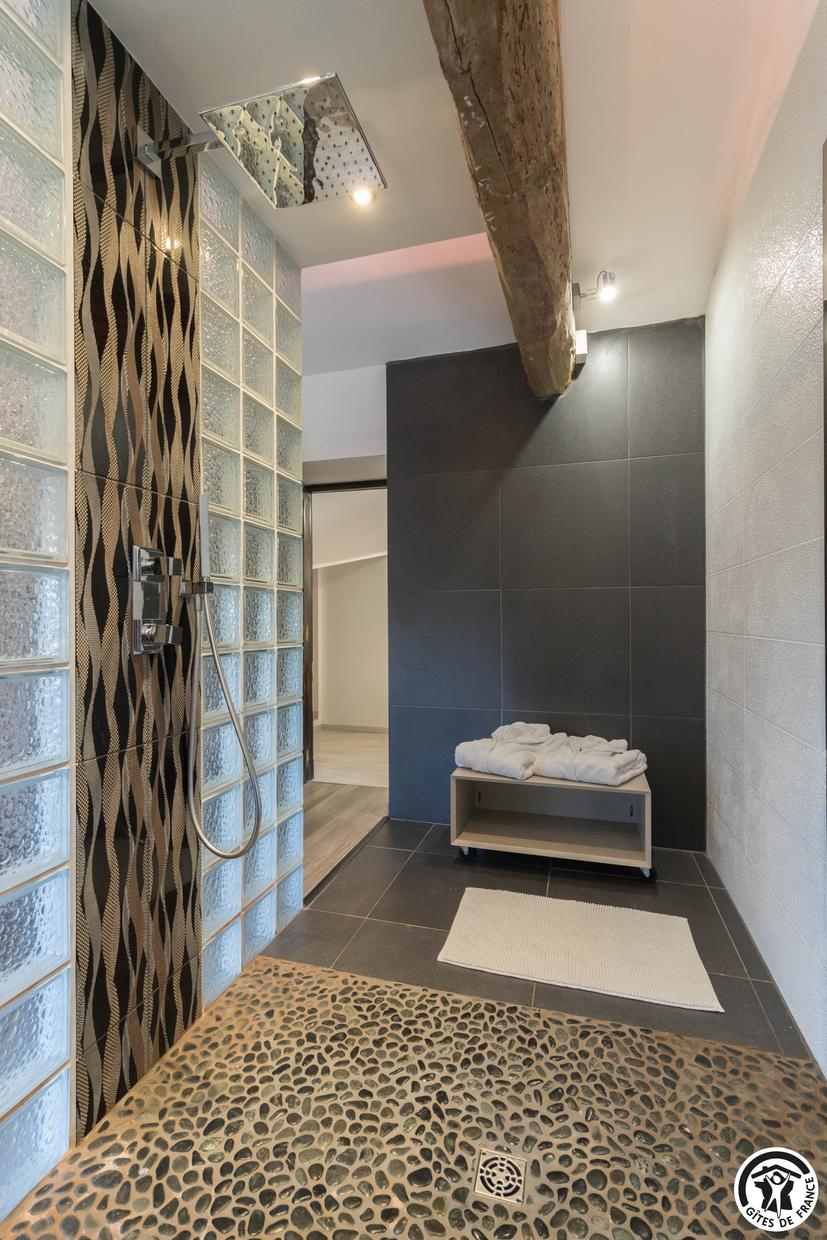 – First floor: lounge, “Lila” bedroom (180*200cm double bed, TV, reversible air conditioning, desk) with fireplace and shower room/WC, “Matières” bedroom (180*200cm double bed, reversible air conditioning) and “Suite” bedroom (180*200cm double bed, TV, air conditioning, separate lounge with sleeping area for 2 children) each with bathroom (2-seater bath) + large shower and separate WC.