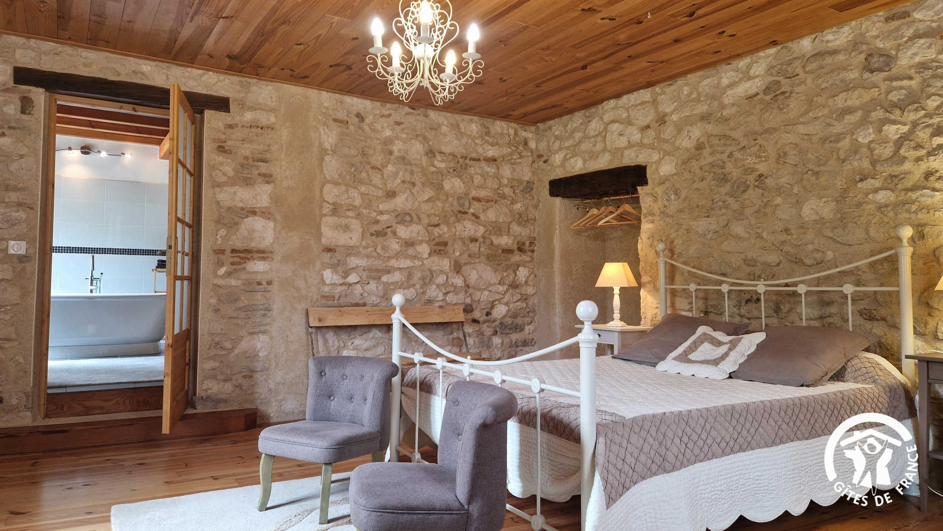 Maison d’hôtes typique des bastides du vignoble de Gaillac avec ses pierres blanches et poutres apparentes