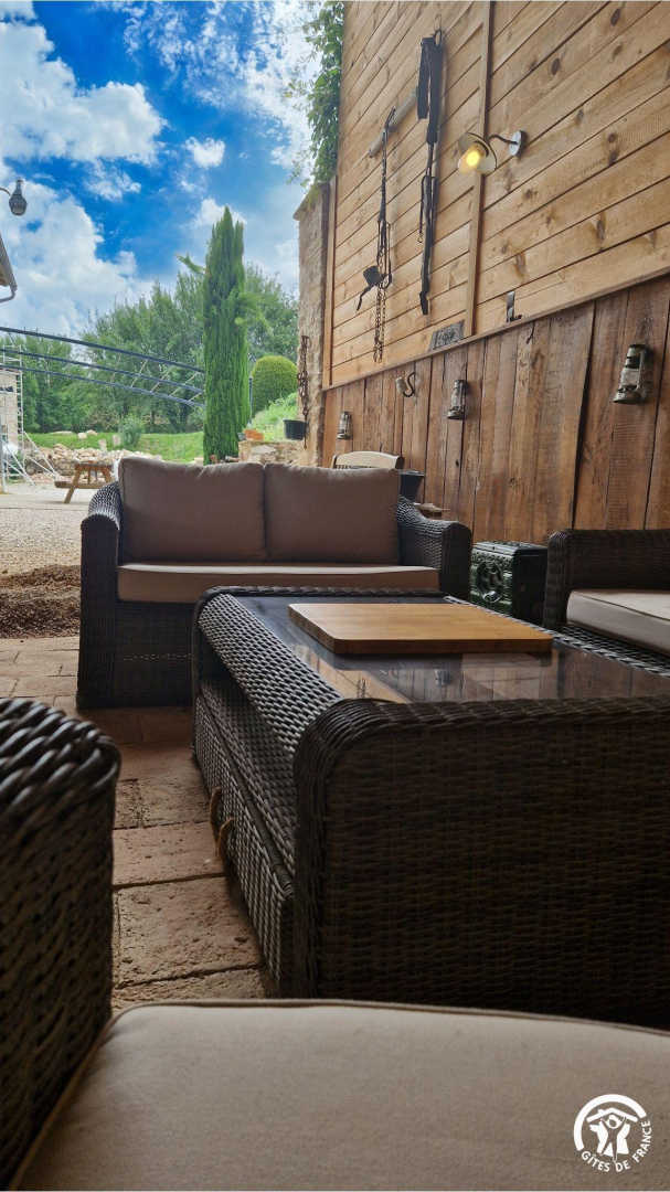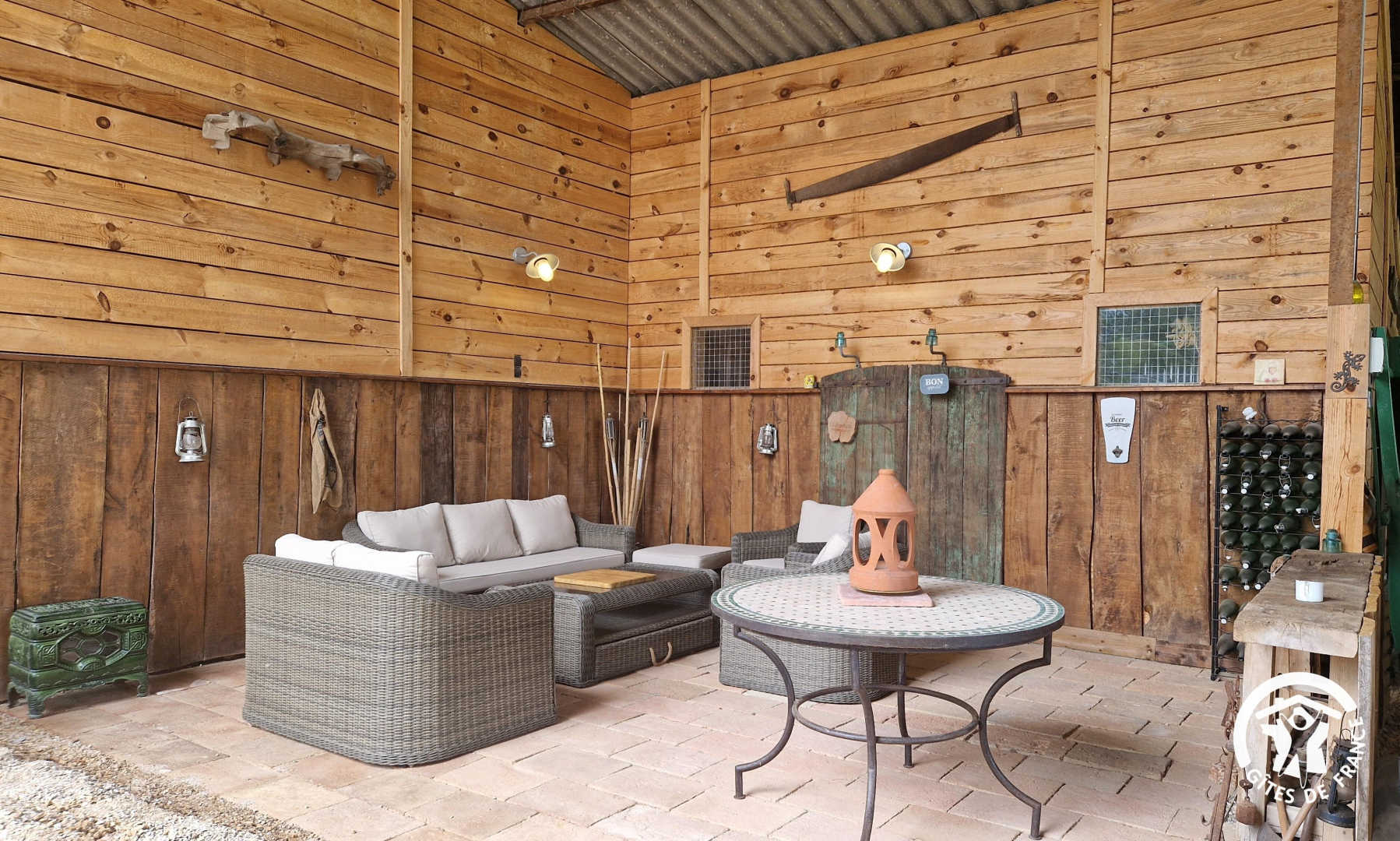 Vous pourrez profiter du calme avec plusieurs espaces extérieurs (5000m² de terrain, suivi de champs agricoles et de la forêt. Attenant à la maison, un hangar couvert avec un salon de jardin aménagé, idéal pour profiter même en cas de chaleur ou de pluie.