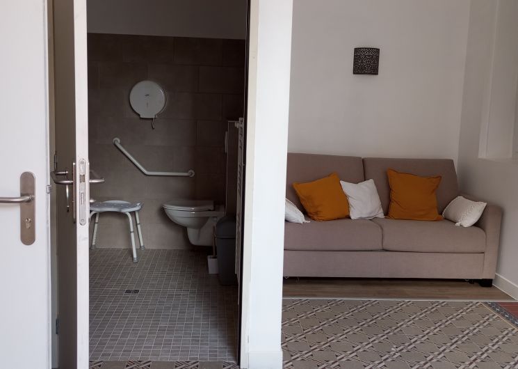 The bedroom has 2 single beds (0.90 x 200cm) and 1 PRM shower room with toilet.) A 140 x 190 sofa bed. Access to a reading room on the 1st floor. Wifi in the house. Optional on-site tumble dryer available. Access to the owner’s garden with deckchair and garden furniture.