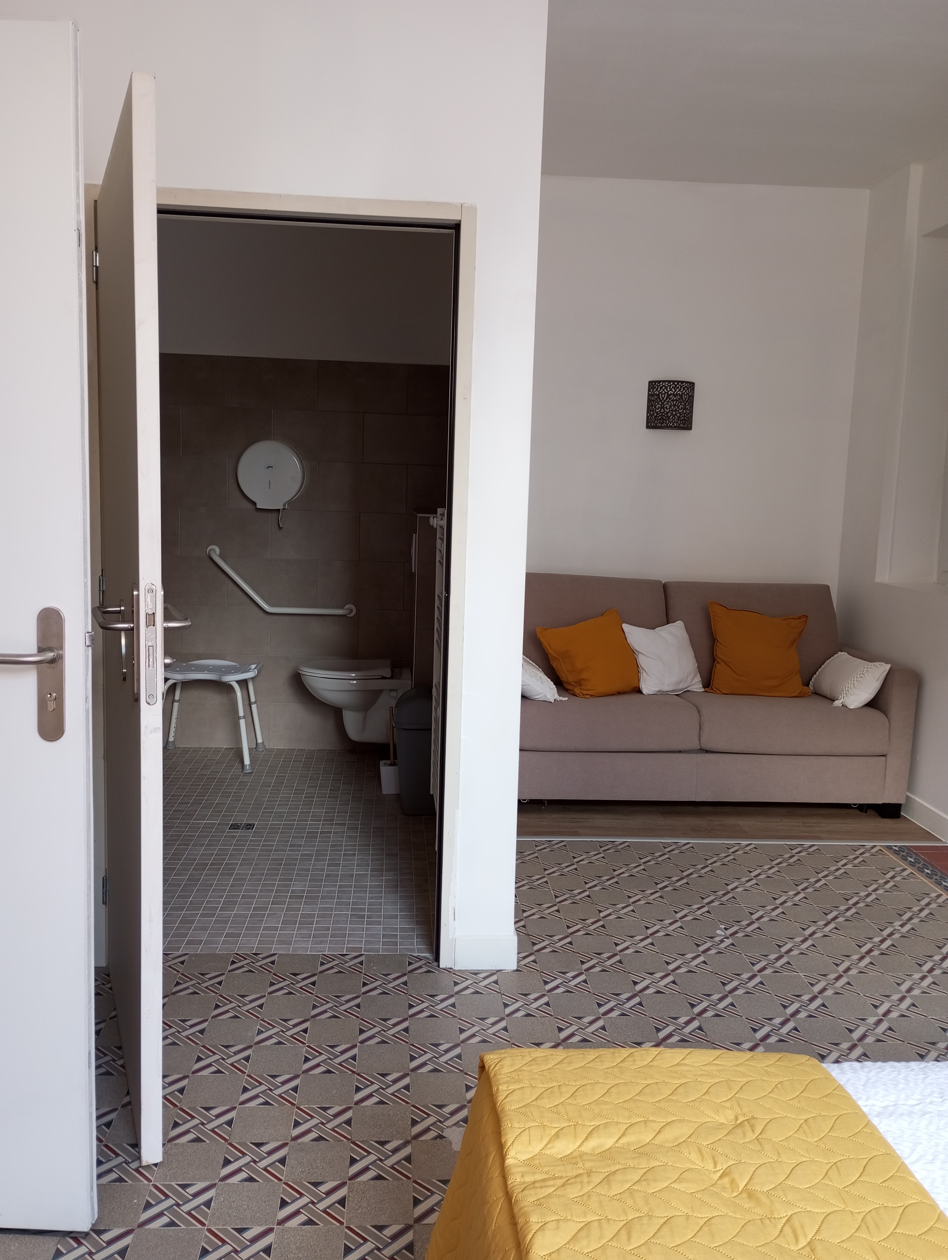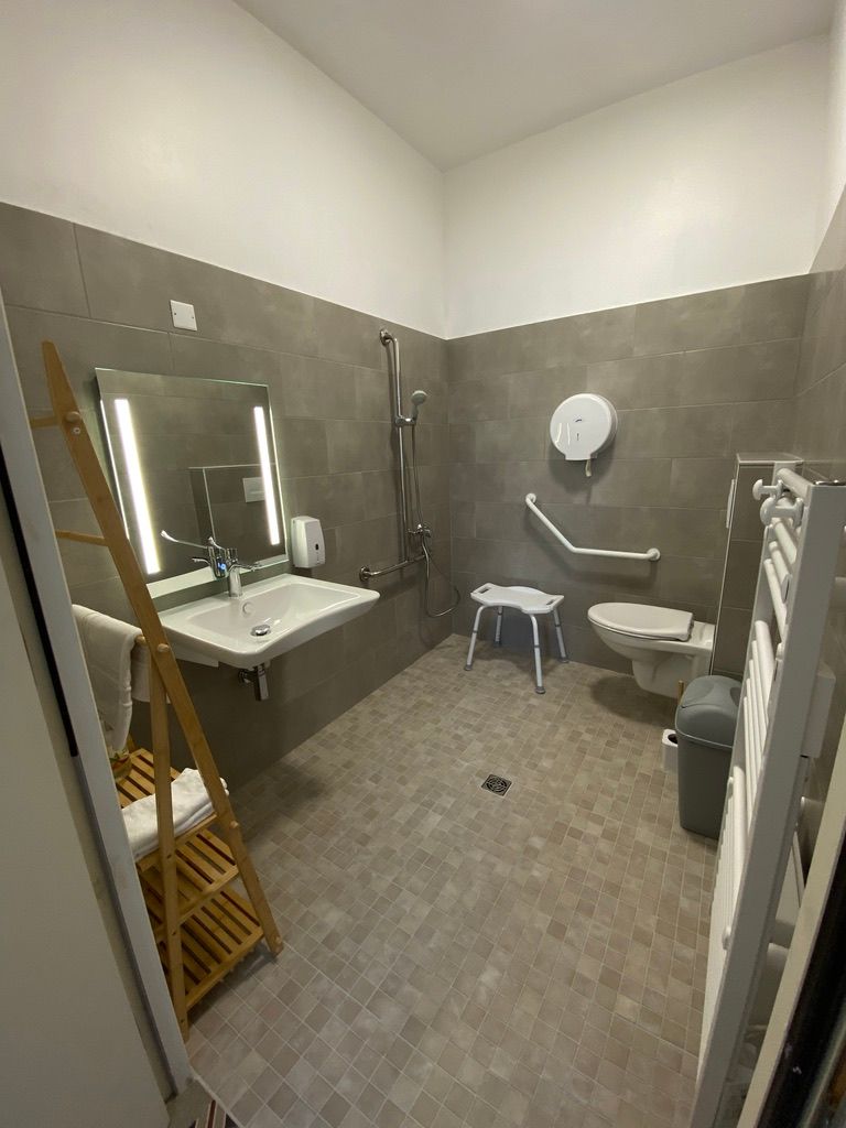 Au rez-de-chaussée de cette belle demeure en plein centre de Moissac bénéficiant d’un grand jardin accessible, et à deux pas du cloître, profitez d’une étape ou d’un séjour dans cette chambre PMR.