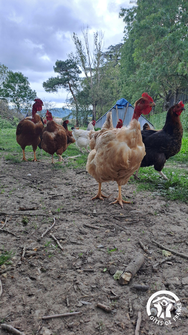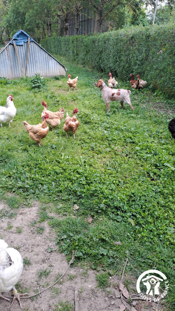 Vous pouvez vous balader dans l’ancienne ferme qui reste en activité pour des céréales. Une vingtaine de poules et un coq sont à quelques mètres du gîte, ainsi que le chien des propriétaires.