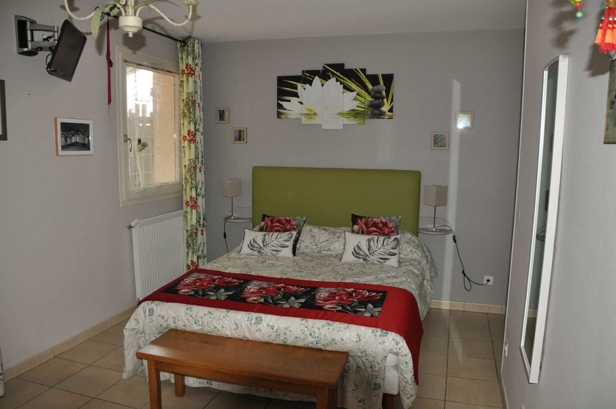 Ouvrant chacune sur une terrasse privative, les trois chambres sont situées au rez-de-chaussée avec vue sur l’agréable jardin et accès indépendant. Chacune possède un lit en 160 (dont une avec possibilité de lit d’appoint en 90) avec salle d’eau/wc privés.