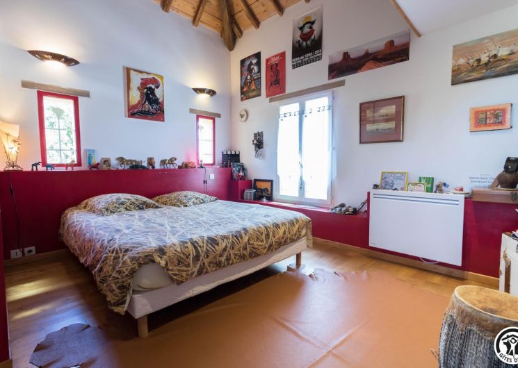During your week’s holiday with family or friends, you’ll find everything you need for an unforgettable stay. From April to September, take advantage of the Nordic bath heated over a wood fire, or try your hand at the local sport in the shade of the many fruit trees: pétanque! You can also enjoy an aperitif and watch the sun set from the solarium above the old rabbit hutch, or in the games room in the former hay barn of this wonderful farmhouse. Michel, the owner, a keen traveller and horse enthusiast, also has a summer kitchen in the former pigsty, with a real butcher’s block. Numerous hammocks and lounges are available for a relaxing country holiday.