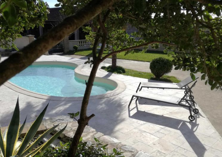 Belle terrasse ensoleillée, piscine privative sécurisée (8x4m, profondeur maxi 1,5m, ouverte de mai à octobre). Passez de bons moments conviviaux autour du barbecue.