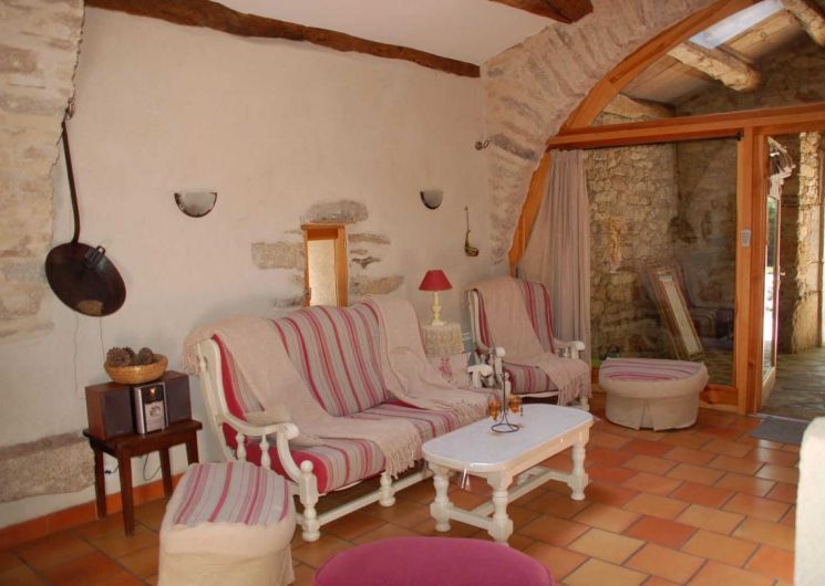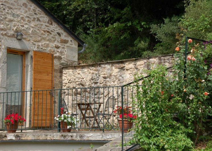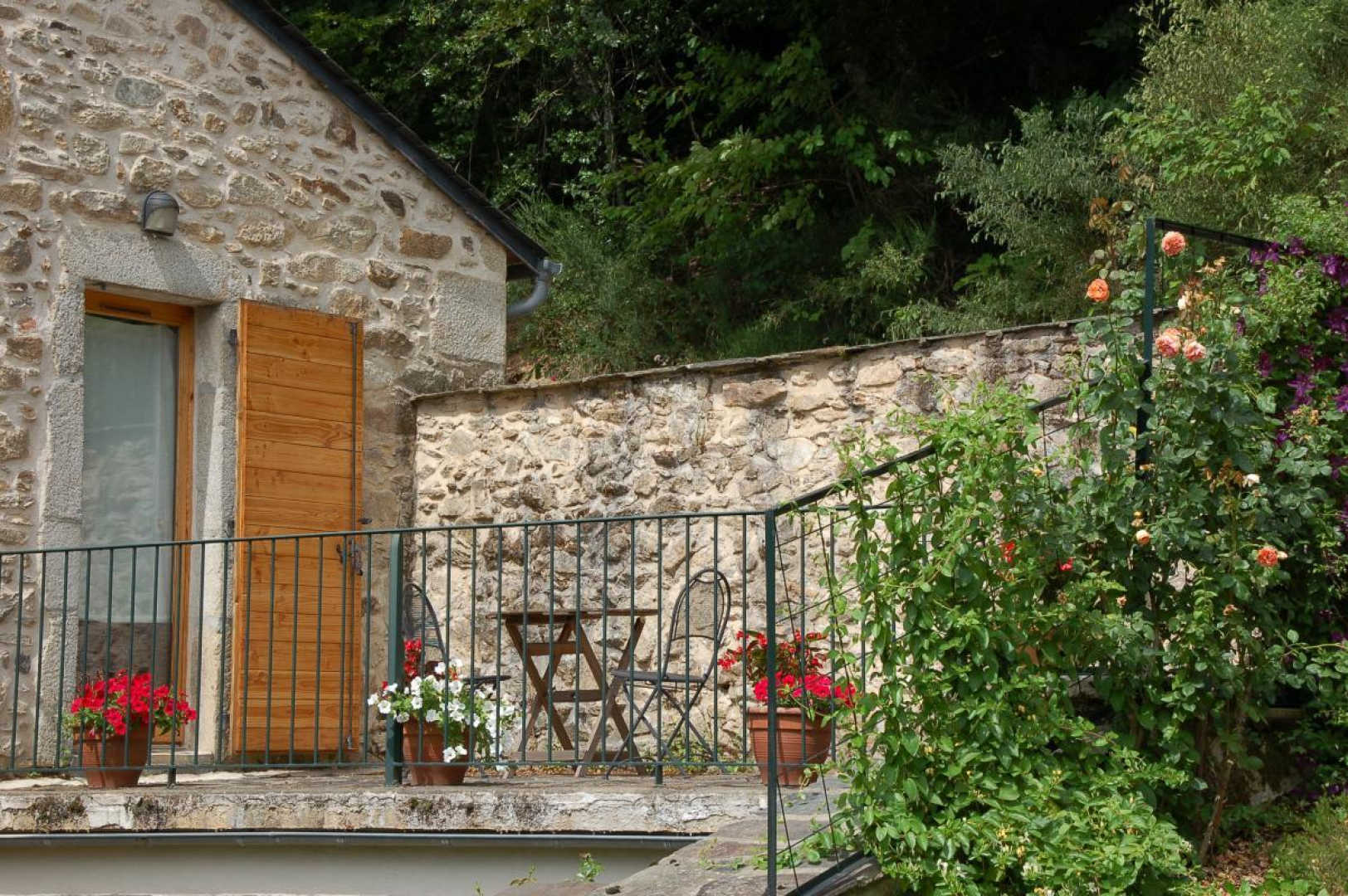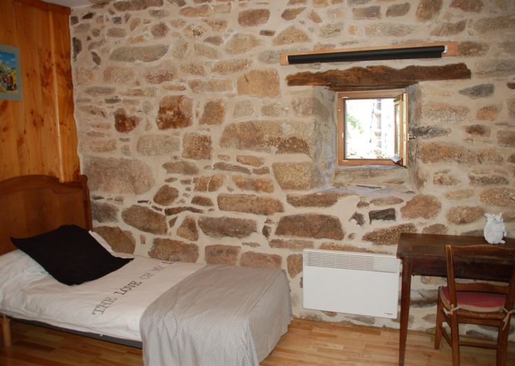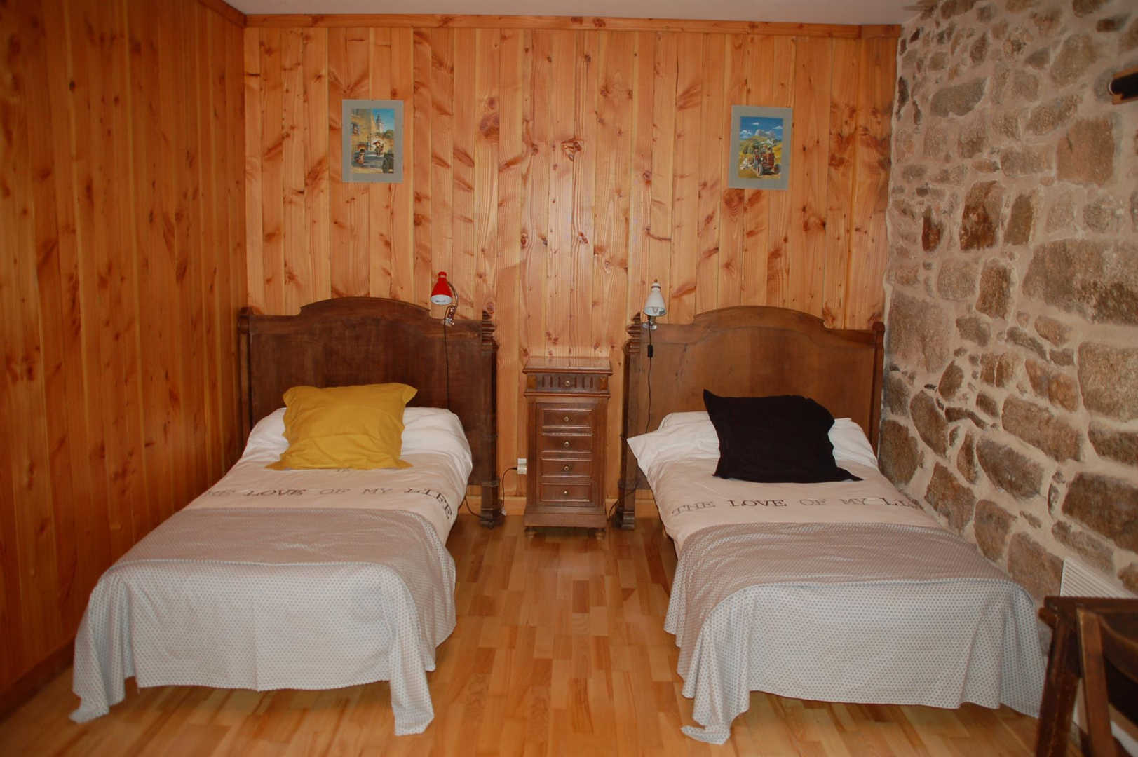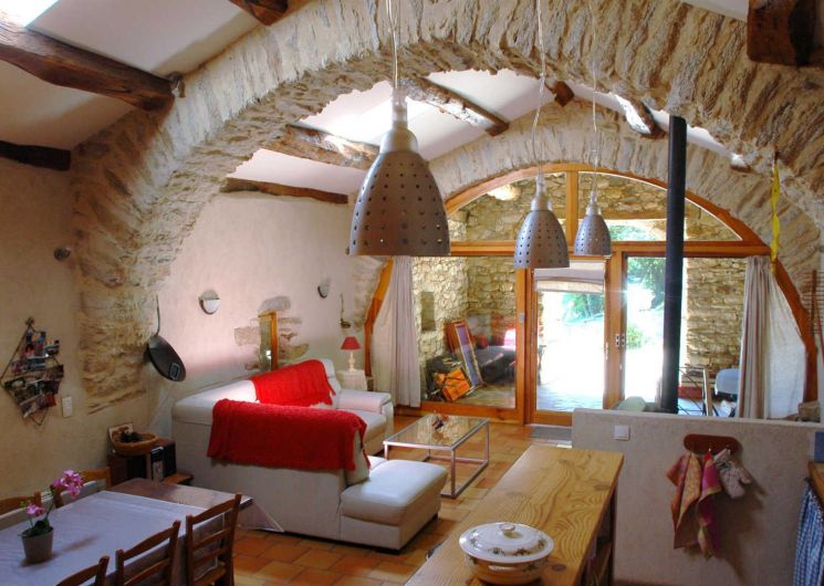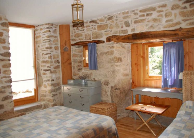 On site, the setting immediately invites relaxation: a stream below, wooded mountains all around and, at times, deer venturing into the nearby meadows. The estate brings together two independent character cottages, awarded the Panda and “Art de Vivre” labels. Set in buildings over two centuries old, they were restored by Cécile and Olivier, highlighting local stone and wood. In this large cottage, the arches of the former barn, dating from 1804, are particularly noteworthy.