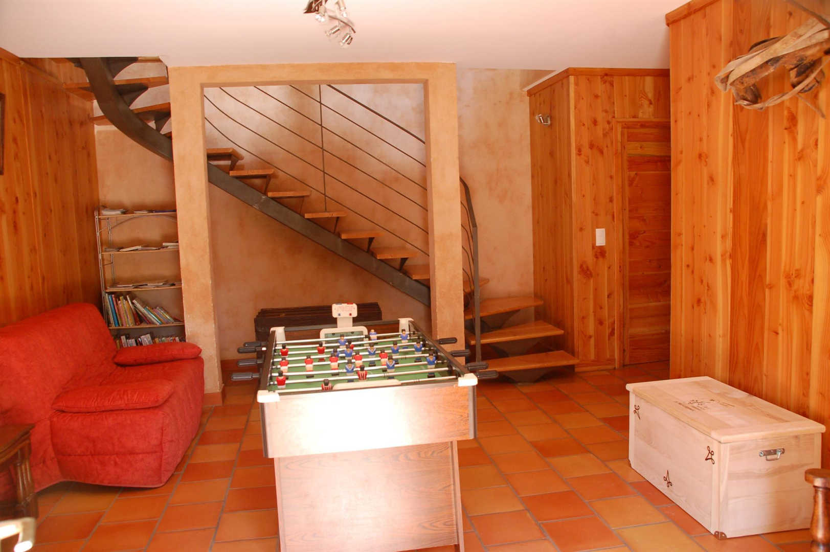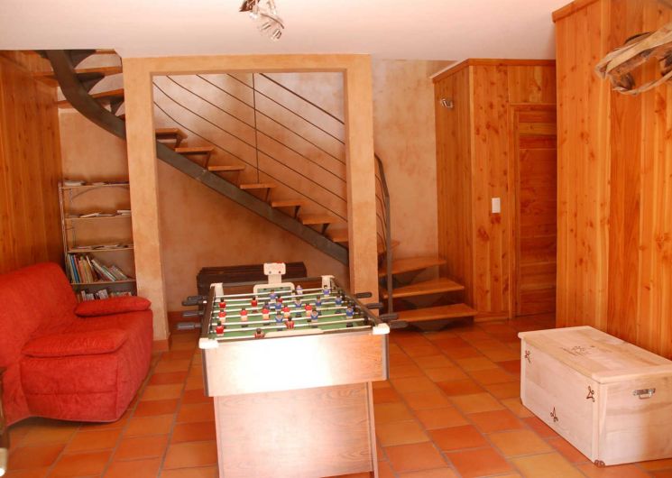 There is also a games room with a library and table football, as well as a bathroom and a separate toilet.
