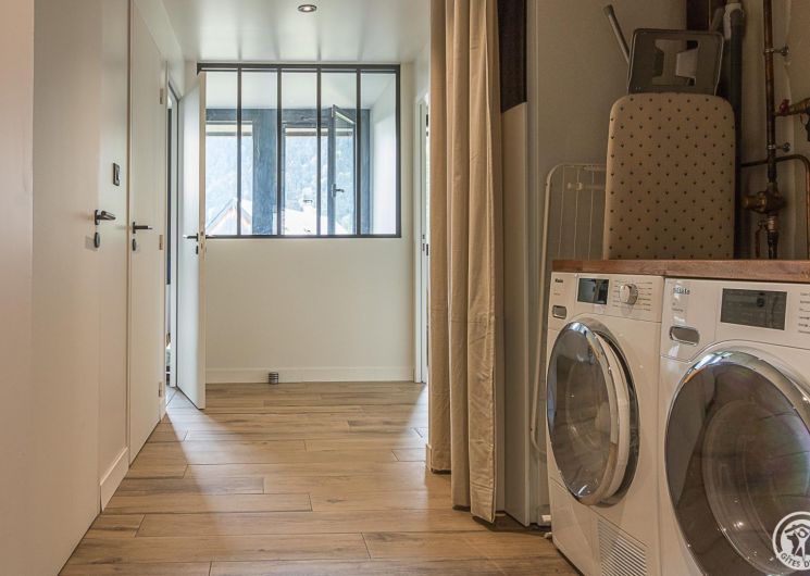 The living areas are on the upper floor: entrance hall, separate WC, superb, spacious living room with large windows overlooking the valley. The living room has several areas: the TV area, the fireplace with its wood-burning stove, the games area (or teleworking area for the more studious!). The kitchen opens onto the dining area, which looks out over the mountains. A staircase (without ramp) leads to the lower level, which is also accessible from the street (courtyard). This floor is dedicated to sleeping quarters with 6 bedrooms (2 bedrooms with 2 single beds 90cmx200cm) (3 bedrooms with 1 double bed 160cmx200cm) (1 bedroom with 1 double bed 160x190cm and a lounge area), a bathroom with bath and shower, a shower room with shower, a separate WC and a laundry area under the stairs. Underfloor heating by heat pump. WIFI and wired internet connection.