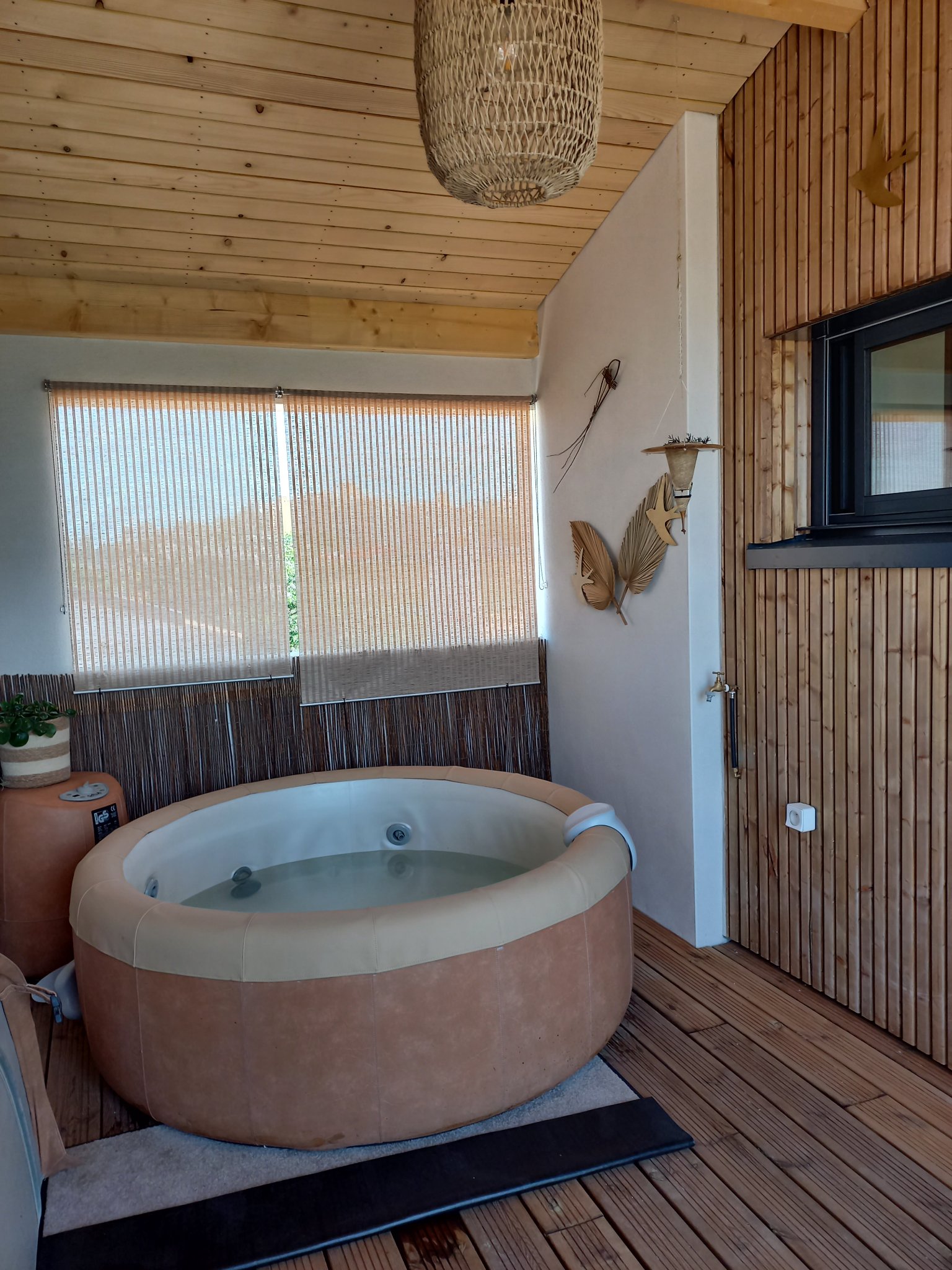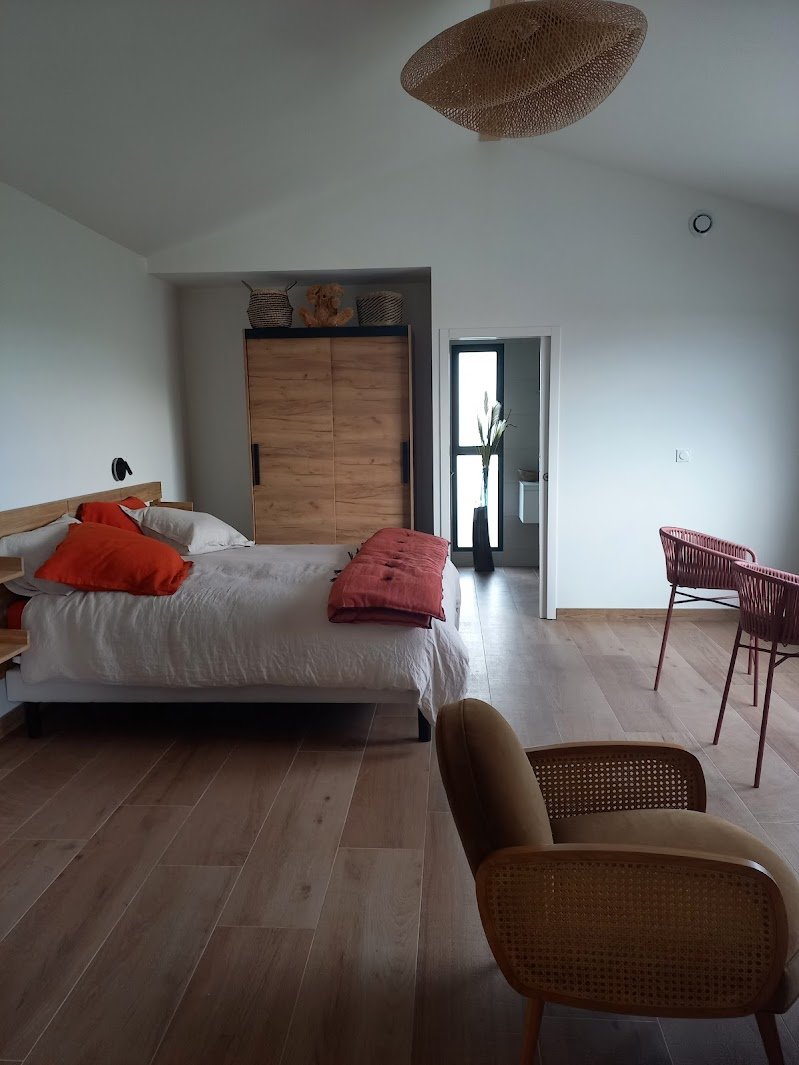 Une unique chambre d’hôte de 35 m2 située au premier étage, vous offrira zénitude et relaxation avec une vue imprenable ! Vous profiterez de votre terrasse privée, équipée d’un jacuzzi (2 pers).