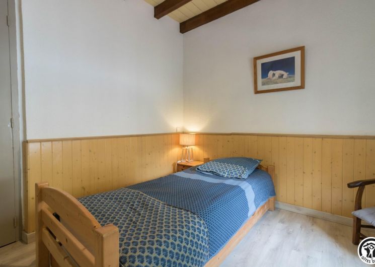 Ground floor: large living room with seating area and open-plan kitchen, 3 bedrooms (2 single beds 90cm) (1 double bed 140cm) (2 pull-out single beds 90cm), shower room/WC. Utility room. First floor: 2 bedrooms (1 double bed 140cm) (2 single beds 90cm), bathroom, WC. Extra bed (90cm) available. Baby equipment. Wifi internet access. Oil-fired central heating.