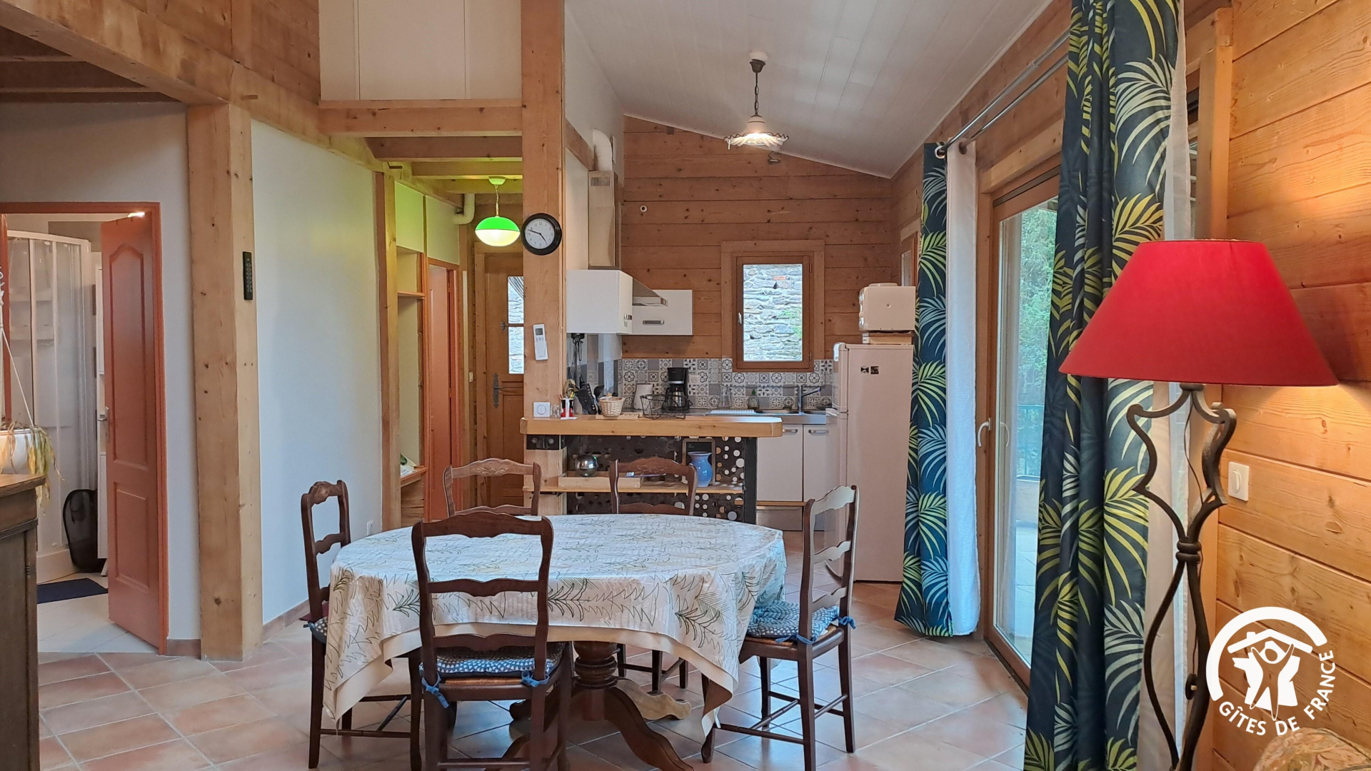 Le gîte est une maison atypique en bois, en madriers bois empilés, totalement indépendante