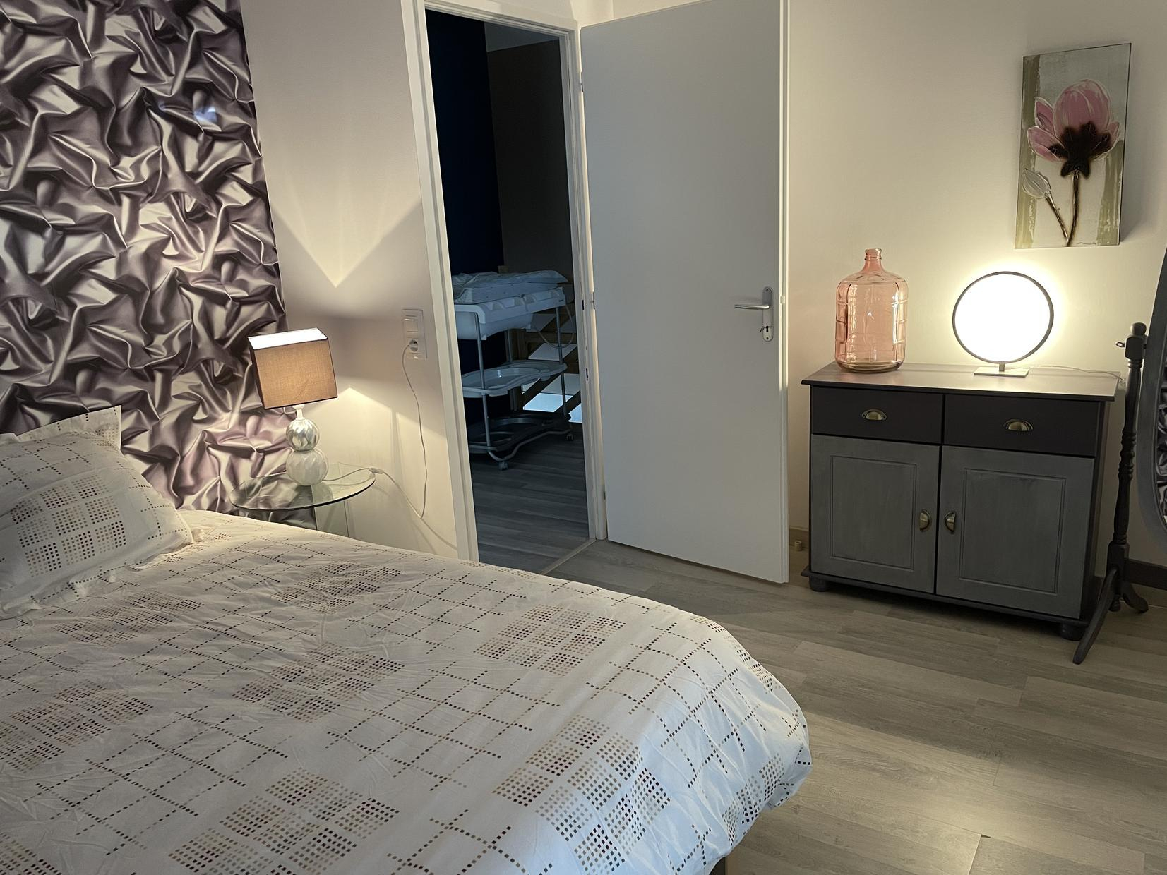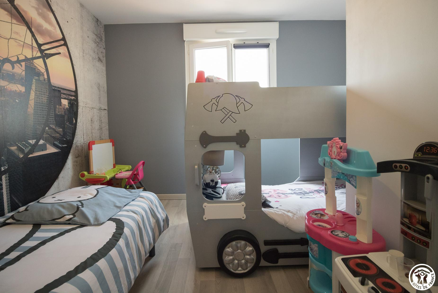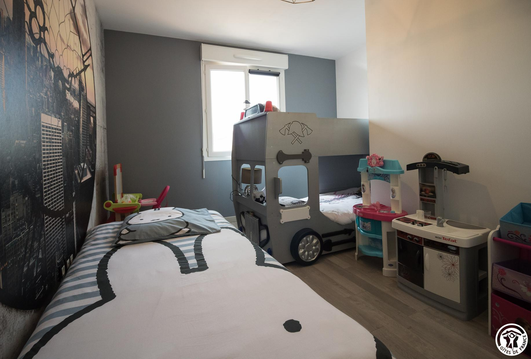 – Upstairs: 3 bedrooms (1 double 140cm bed) (1 double 140cm bed with large dressing area) (children’s bedroom: 1 single 90cm bed and 2 single 90cm bunk beds), bathroom with WC.