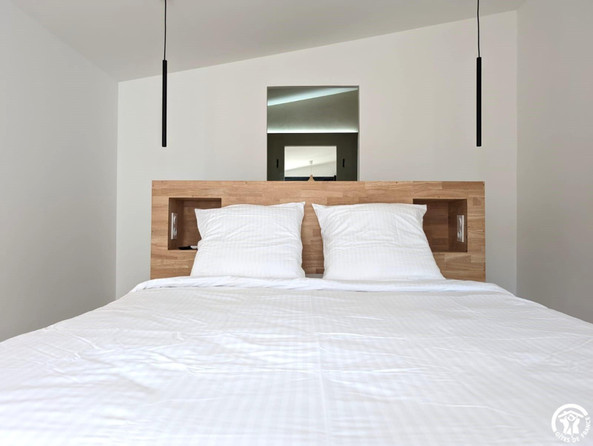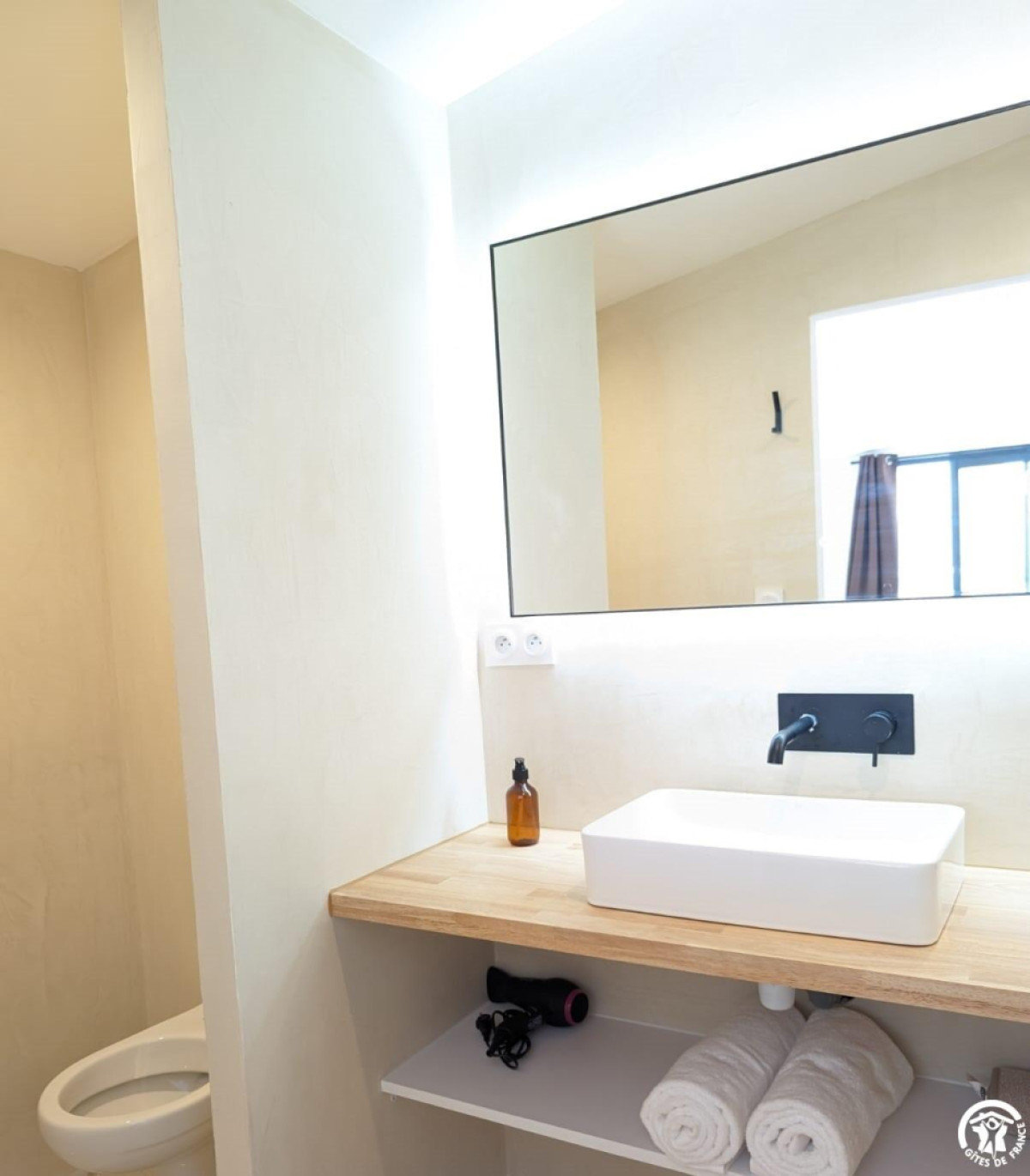Trois chambres doubles sont à disposition dans une ancienne bâtisse refaite à neuf, avec chacune une terrasse commune surplombant la cuisine vous permettra de déguster un petit déjeuner local et fait maison. Vous pourrez également profiter d’une belle pièce de vie commune avec canapés et télévision, d’une salle commune pour prendre vos petits-déjeuners continentaux (viennoiseries, pain perdu maison, thé, café, fruits…) avec un coin cuisine avec micro-ondes et réfrigérateur/congélateur, ainsi qu’un WC. Une belle piscine chauffée à 24° vous attend, ainsi que des transats tout autour et un petit salon extérieur façon Riad. Des vélos sont disponibles à la location avec supplément sur place. 2 places de parking sont à disposition sur demande et avec supplément (10€/jour). Un spa et un sauna sont également disponibles sur demande pour des séances d’une heure, à voir avec les propriétaires. Chaque chambre dispose d’un lit double 160*200, d’une salle de douche/wc, de la climatisation, d’une télévision, du nécessaire de toilette, d’un service thé/café et d’une terrasse privative donnant sur la piscine. La position du gîte vous permettra de profiter des atouts de la ville de Sète à pied. Faites une balade sur le Mont Saint Clair et admirer la vue imprenable sur Sète, l’étang de Thau, la mer et les environs. Entre Méditerranée et Etang de Thau vous aurez un vaste choix de baignades, activités nautiques, sorties en bateau… Pour des soirées concerts, renseignez-vous sur la programmation du Théâtre de la Mer, théâtre à ciel ouvert avec une vue magique sur la mer. Vous pourrez également rejoindre les plages et animations des stations balnéaires alentours comme Balaruc, , Marseillan, ou encore Agde. A quelques minutes, vous pourrez rejoindre Pézenas, vous balader dans ses ruelles médiévales ses boutiques d’artisanat. Pour des balades à pied ou à vélo, vous pourrez emprunter la piste cyclable de Sète qui rejoint Marseillan, Agde et Béziers en bordant le Canal du Midi. – Lumineuse chambre double avec salle de bain (douche italienne et toilette). Vous disposez également d’une petite table basse et fauteuils pour prendre un petit-déjeuner en toute intimité si vous le souhaitez ou alors sur votre terrasse privative. La chambre dispose d’une télévision et de la climatisation. Une cafetière Nespresso et une bouilloire sont à disposition. Linge de toilette (serviette de bain et de piscine) est fourni ainsi que le nécessaire de toilette.