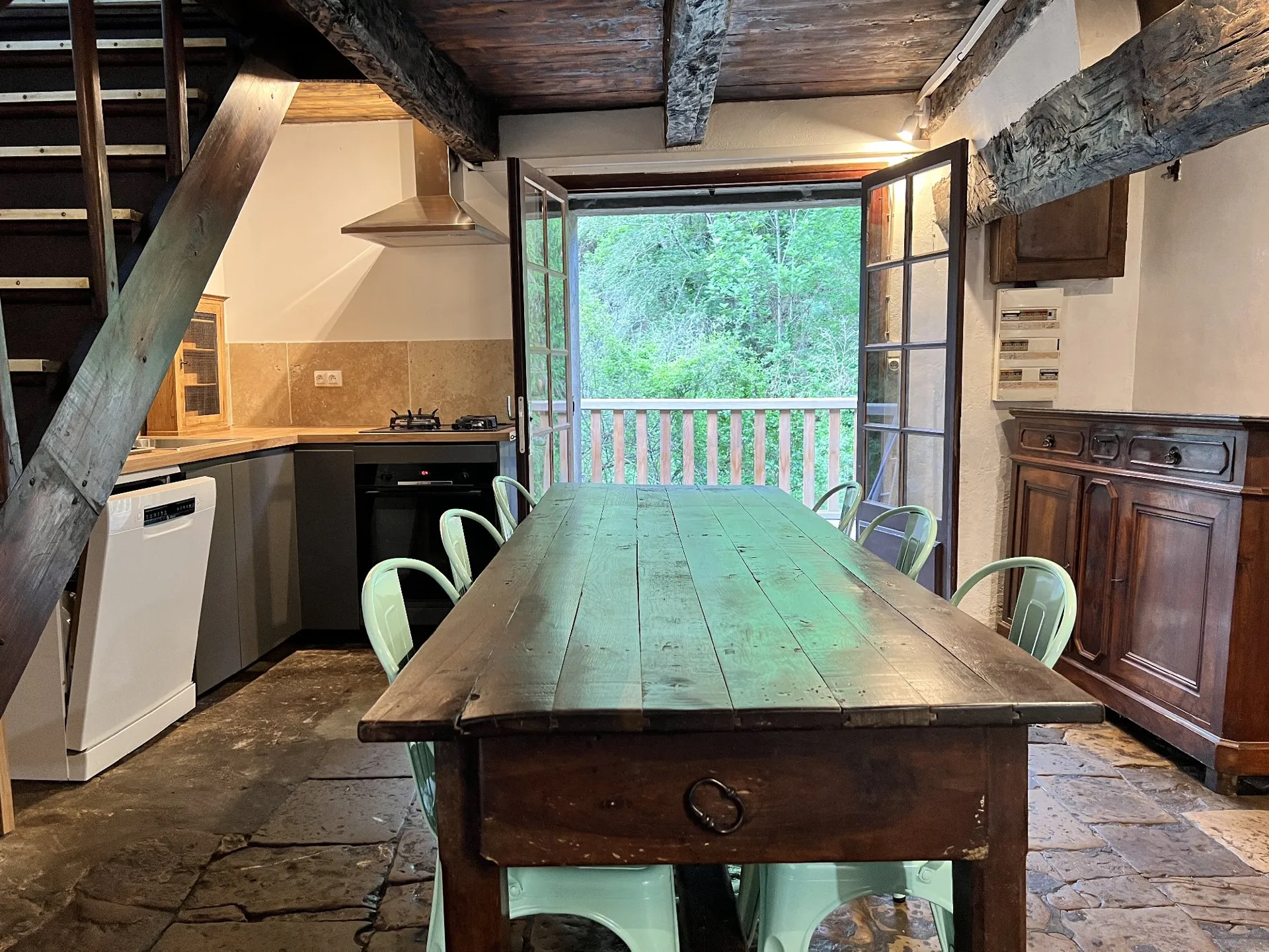 All authentic elements have been preserved. The most special element is related to the kitchen floor. The slabs are “rain stones”. They are the barometer of the house. When a layer of moisture forms on the ground and makes it shiny, it is a sign of rain in a few hours.